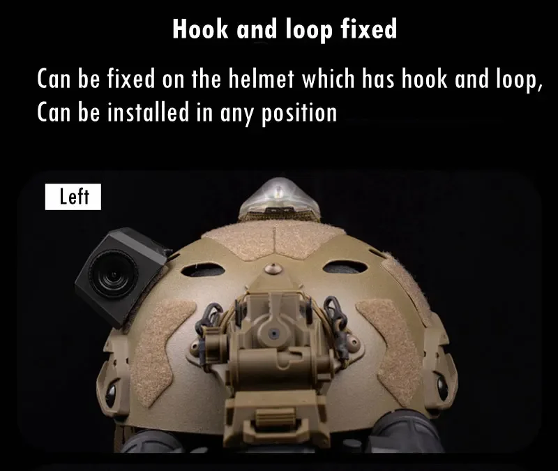 ●Can be fixed on the helmet which has hook and loop, Can be installed in any position