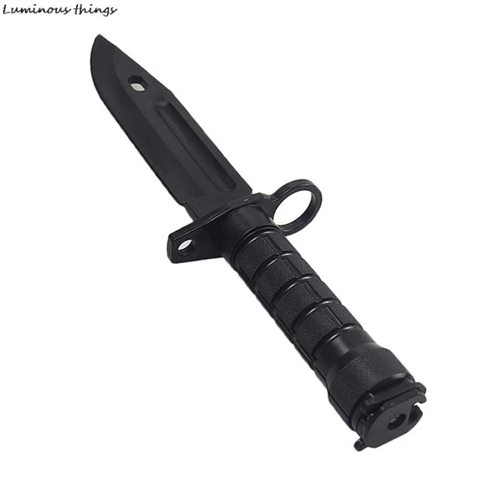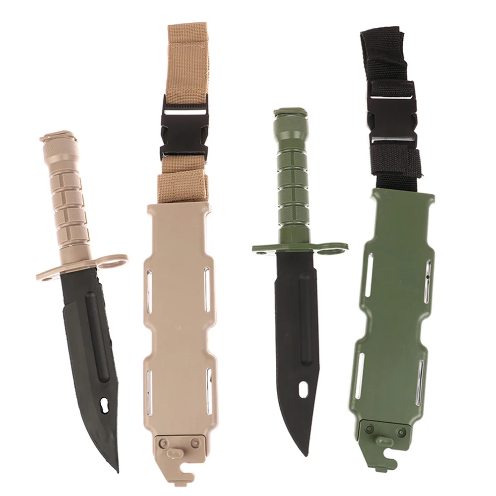 Easy to carry: High density nylon structure, can be hung on the belt, easy to use, show your skills! Fitted with sheathed Airgun plastic dummy M9 bayonet with BS non-slip handle for comfortable use