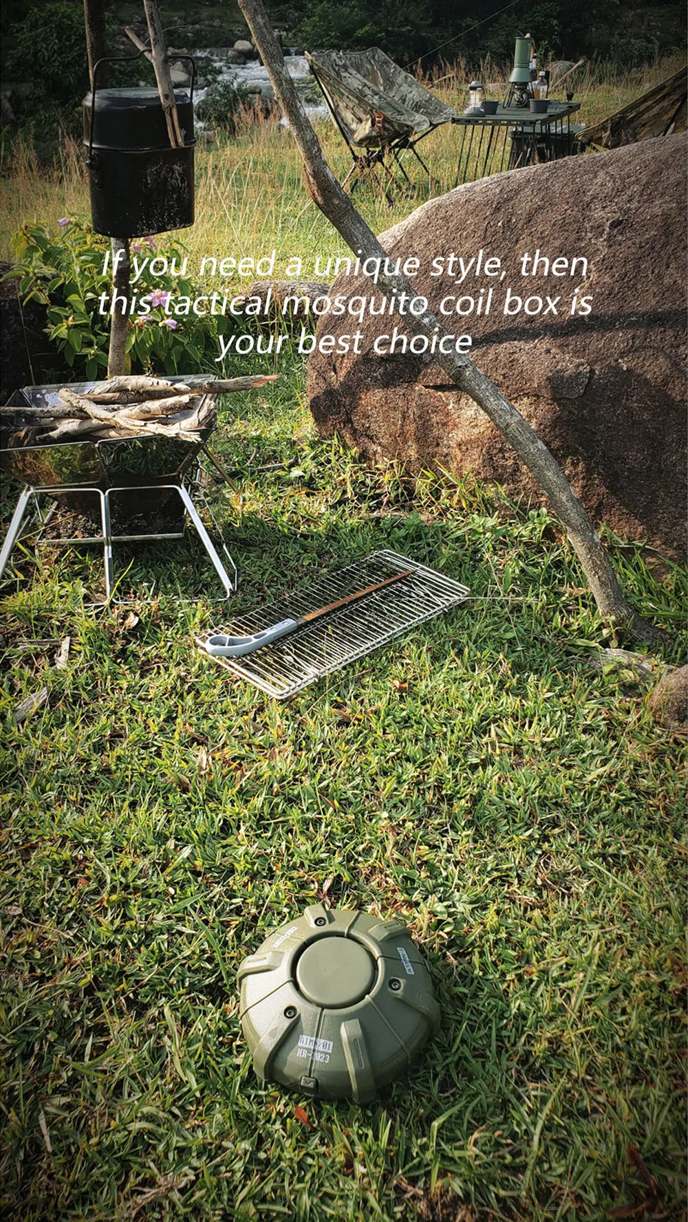 * ¡Esta es una caja táctica de espiral para mosquitos inspirada en el estilo militar! Con una estructura cerrada, puede decir adiós a las llamas abiertas por completo, por lo que puede usarla en interiores, en o cerca de su tienda sin preocuparse por encender objetos o quemarse, y evitando el problema de que las cenizas de la bobina de mosquitos queden por todas partes. Está hecho de Plásticos Industriales compuestos de alta resistencia, con un diseño de apariencia personalizada, que es genial y elegante. Le permite disfrutar de un buen rato con tranquilidad y sentir el encanto de la naturaleza.