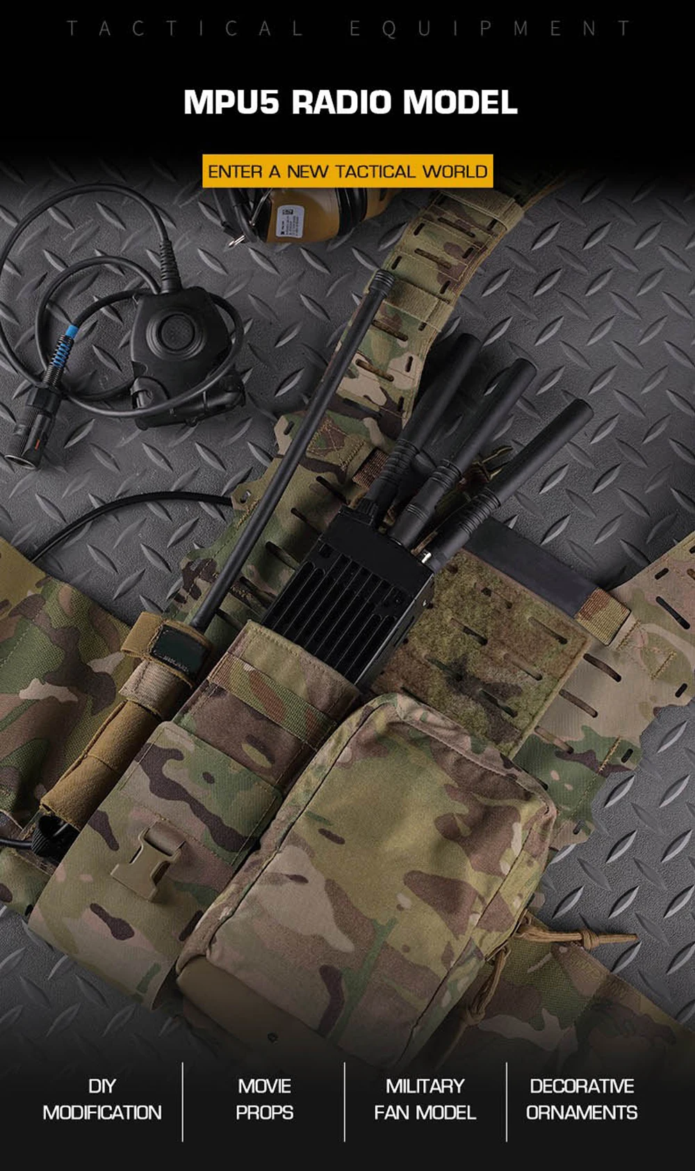 MPU5 Radio modelo ficticio DIY transceptor Walkie-Talkie modelo ficticio CS Airsoft Paintball Wargame Radio Interphone Prop Modelo