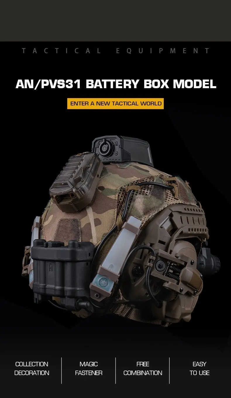 Modelo simulado táctico AN/PVS31, caja de batería para caza al aire libre, equipo de Cosplay Airsoft con sujetador mágico montado