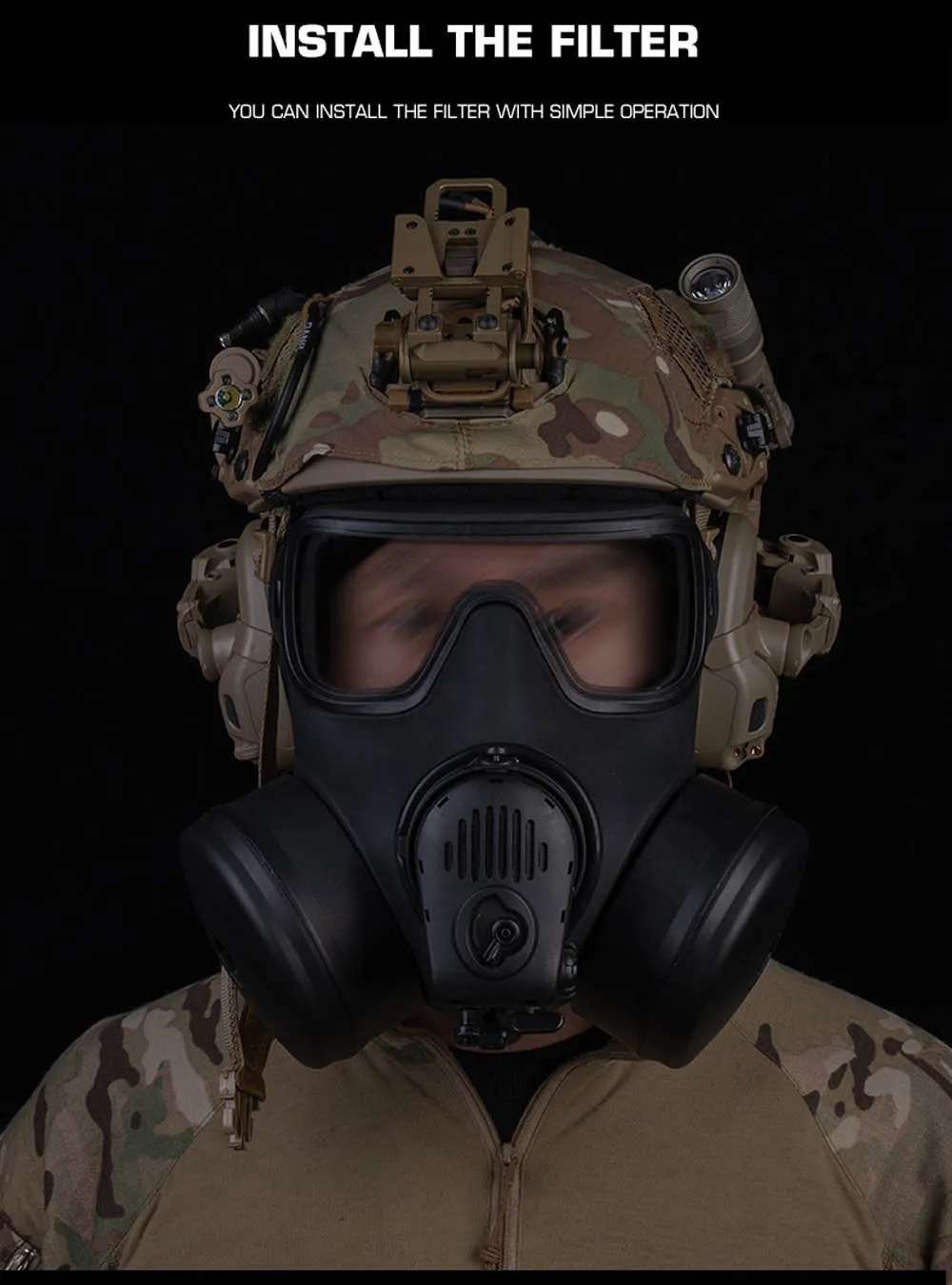 Modelo simulado de tanque de filtro de máscara de Gas M53 con ventilador para accesorios de máscara táctica Airsoft Paintball FM53