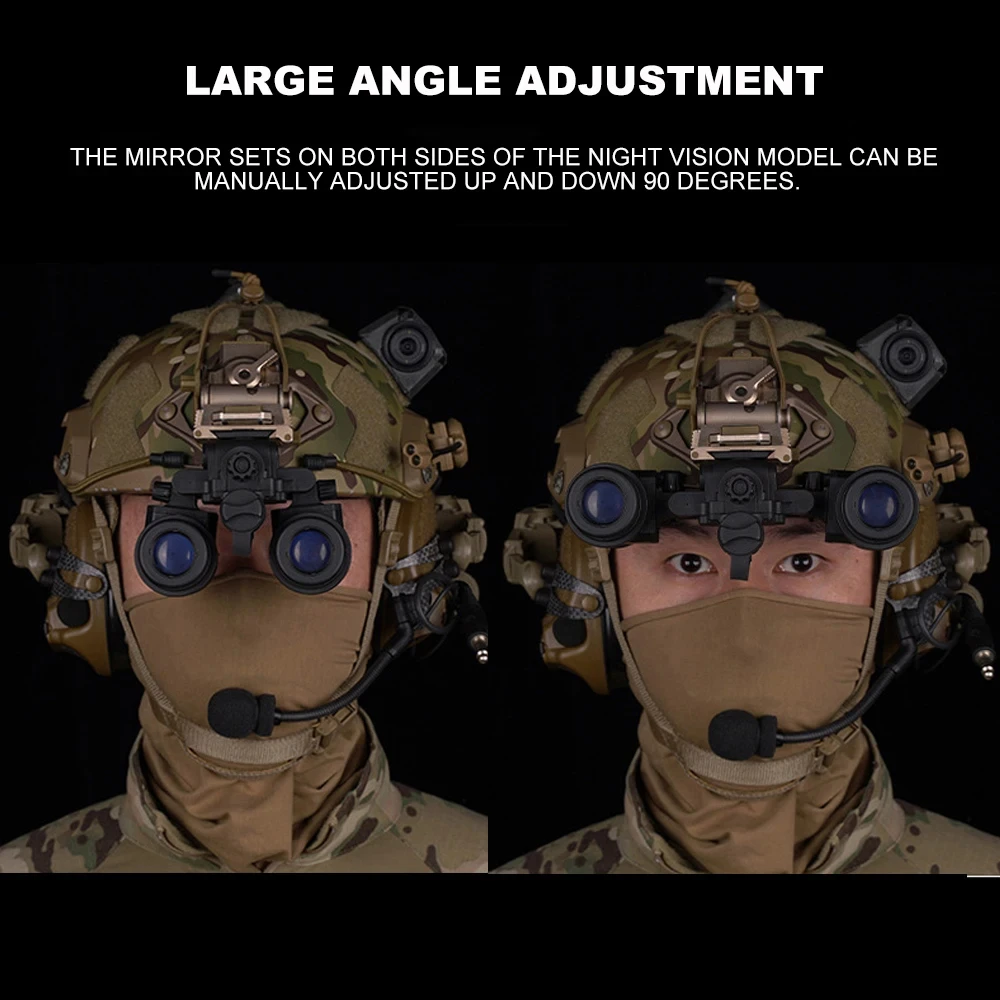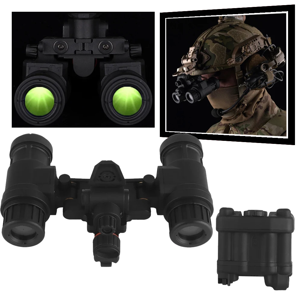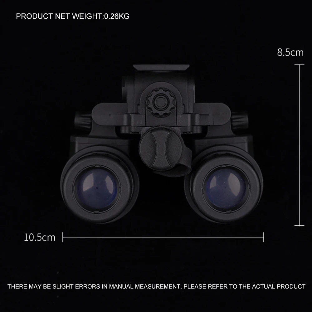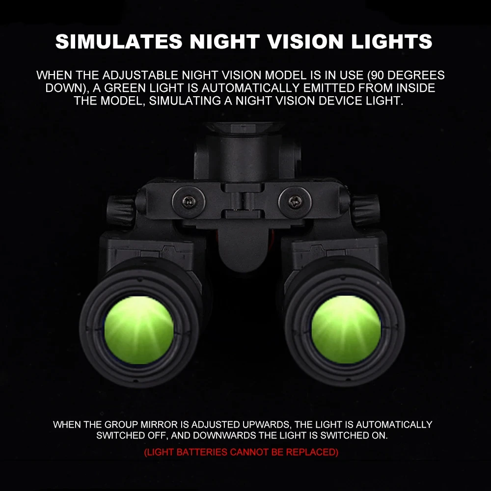 Ajustable: puede ver a través del modelo NVG, pero no claramente, y todo lo que puede ver está al revés. Gire el eje horizontal para ajustar la distancia entre las lentes.