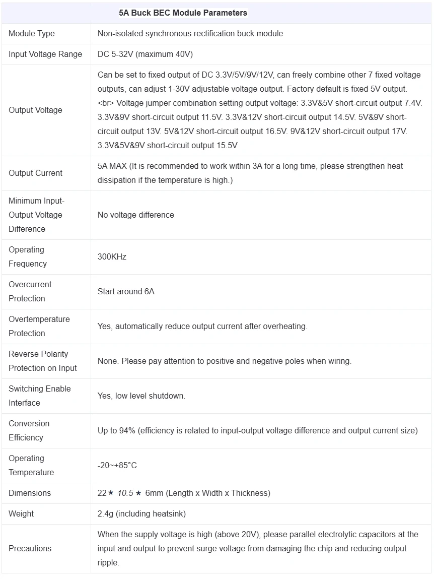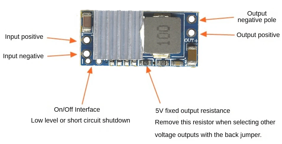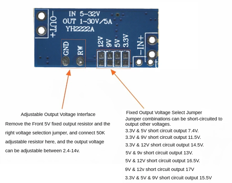 1.Hay disponibles varias conversiones de voltaje reductoras de CC de 5 a 32 V a 1 a 30 V, lo que proporciona voltajes de funcionamiento adecuados para equipos con diferentes voltajes de funcionamiento.Por ejemplo: 12 V a 3,3 V/5 V/6 V/9 V, 24 V a 9 V/12 V/16 V/19 V, etc.