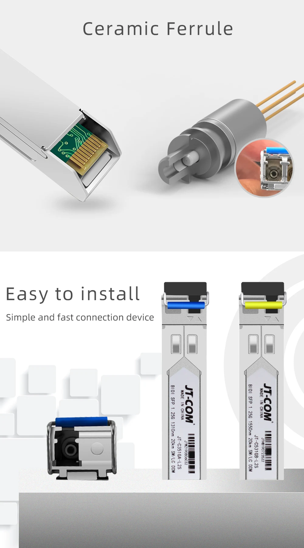 Módulo LC SFP de 1Gb, transceptor óptico de fibra única, módulo de interruptor sfp de fibra Gigabit, 3-80km, Compatible con el interruptor Mikrotik/Cisco