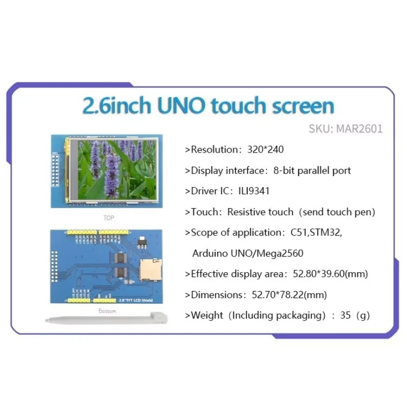 Módulo de pantalla táctil a Color TFT LCD de 2,6 pulgadas 320*240 para placa Arduino UNO/placa Mega2560
