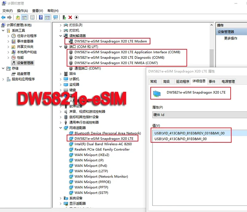 Nota: Esta versión solo para tarjeta e-SIM, no es compatible con otra tarjeta SIM (Dw5821e con