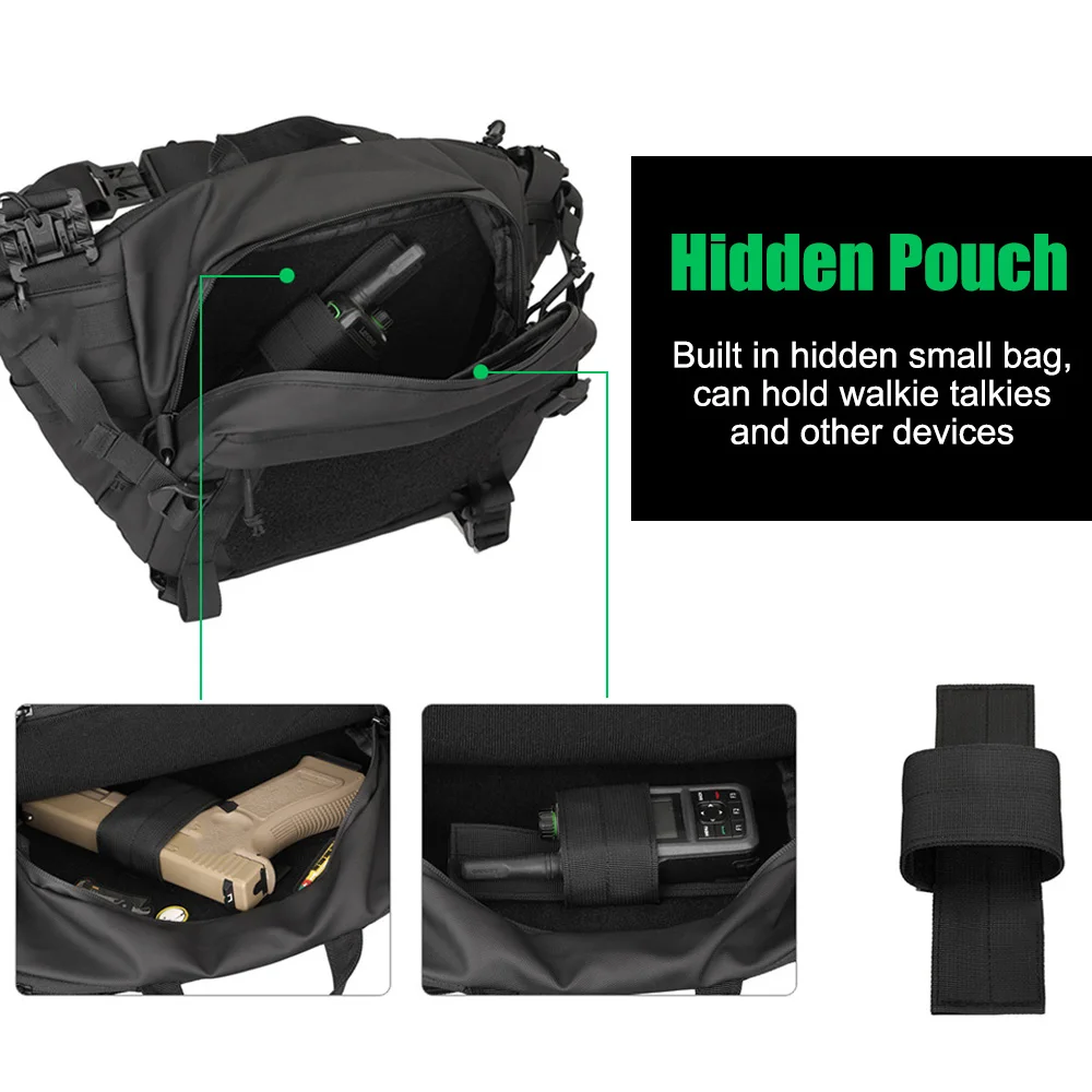 4. Internal Expansion System: Support paste inside expansion template accessories, this bag comes with a hidden gun pouch (can also be placed on other equipment such as walkie-talkies).