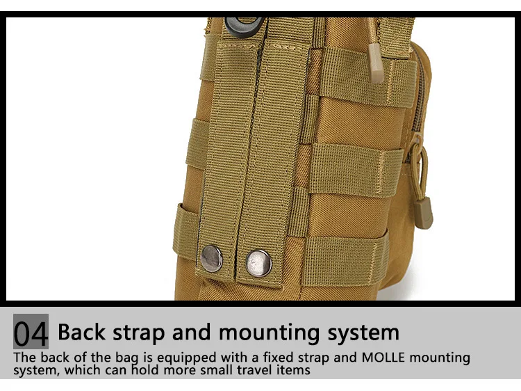 Sistema Molle que se puede utilizar con bolsa grande, mochila o cinturón