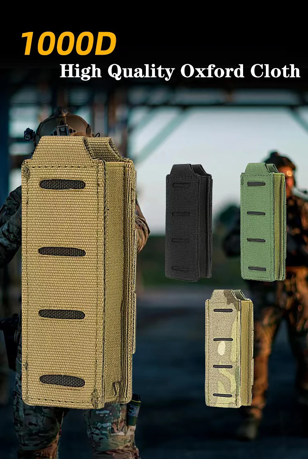 La bolsa es apta para el cargador de pistola de 9mm, puede llevar 1 MAG de pila simple o doble de 1 piezas.