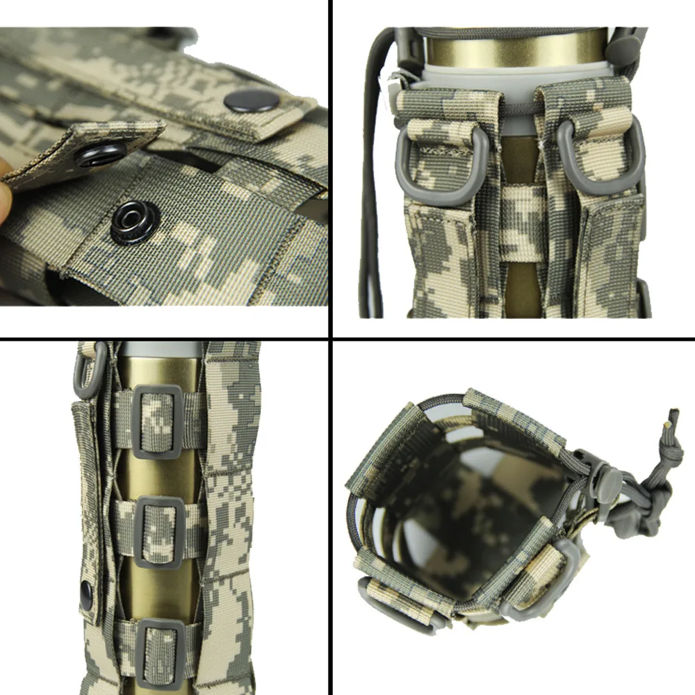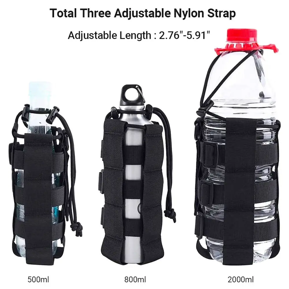 7 Esta bolsa de botella de agua está equipada con un cinturón conector del sistema Molle, se puede colgar fácilmente en bolsas grandes, también se puede colgar en el cinturón para usar, para que la bolsa sea más personalizada y práctica.