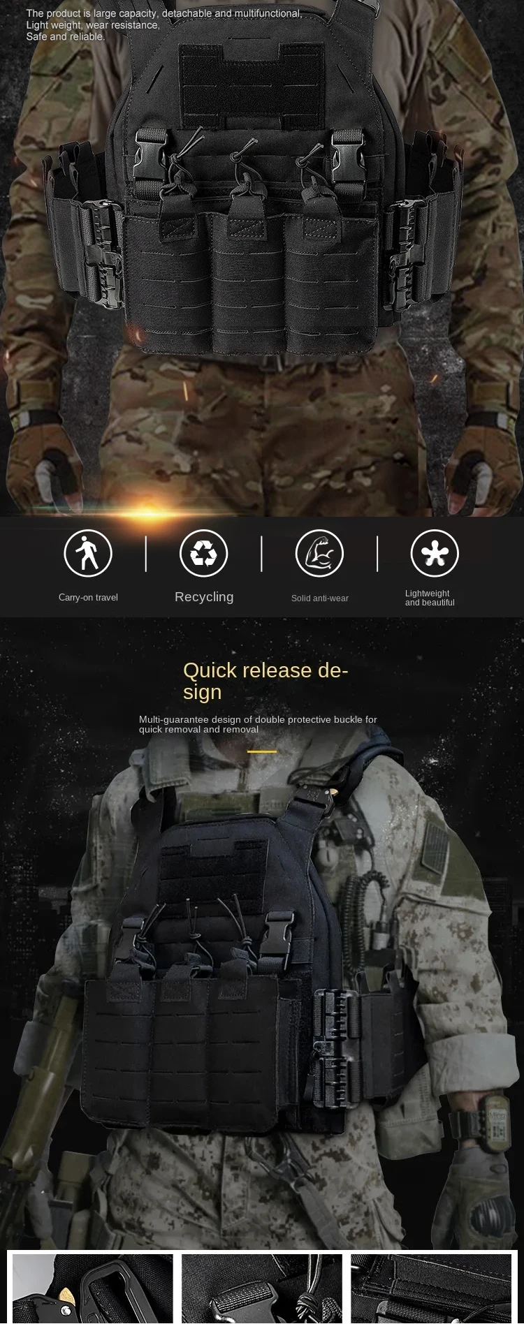 Molle chaleco táctico multifuncional para exteriores, chaleco ligero CS, senderismo, tiro de abejas salvajes, liberación rápida, seguridad