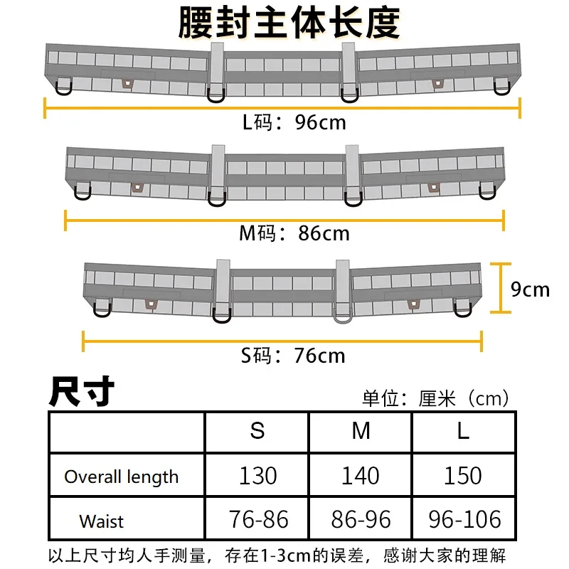 L Ajuste cintura 96-106cm/38 ''-42'', longitud total 150cm