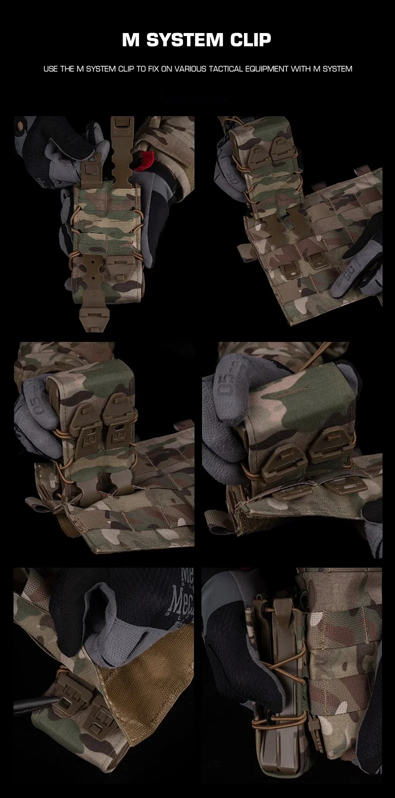 2: Molle system design. Molle Single Pistol Magazine Pouch can also be attach to the vest,belt,backpack.