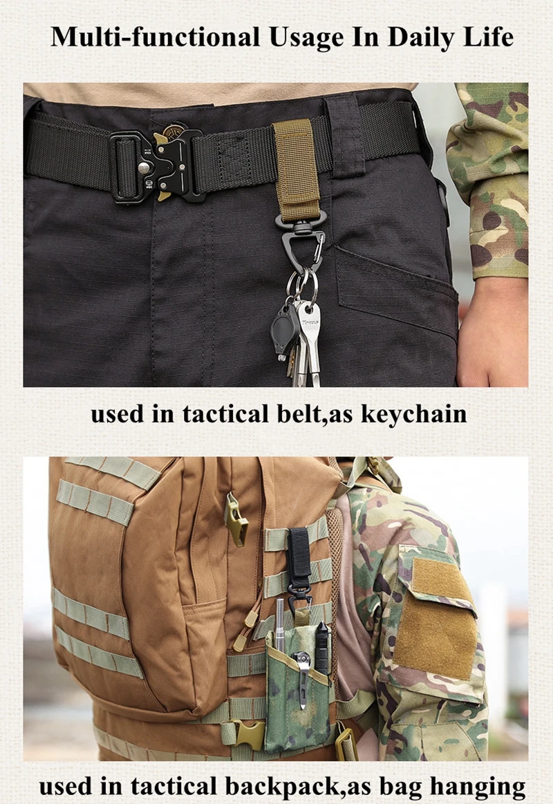 No solo es apto para escalar actividades al aire libre, sino que también combina con cinturón táctico, faja de pantalones, mochilas, etc.