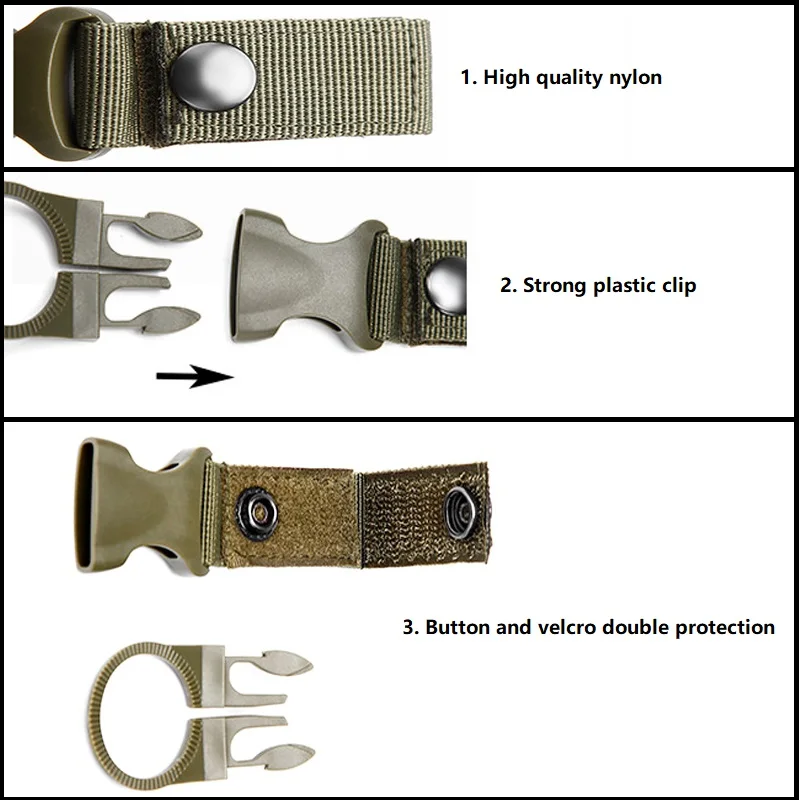 3 estilos para la selección: colgador de botellas, hebilla de almacenamiento de guantes, hebilla colgante táctica