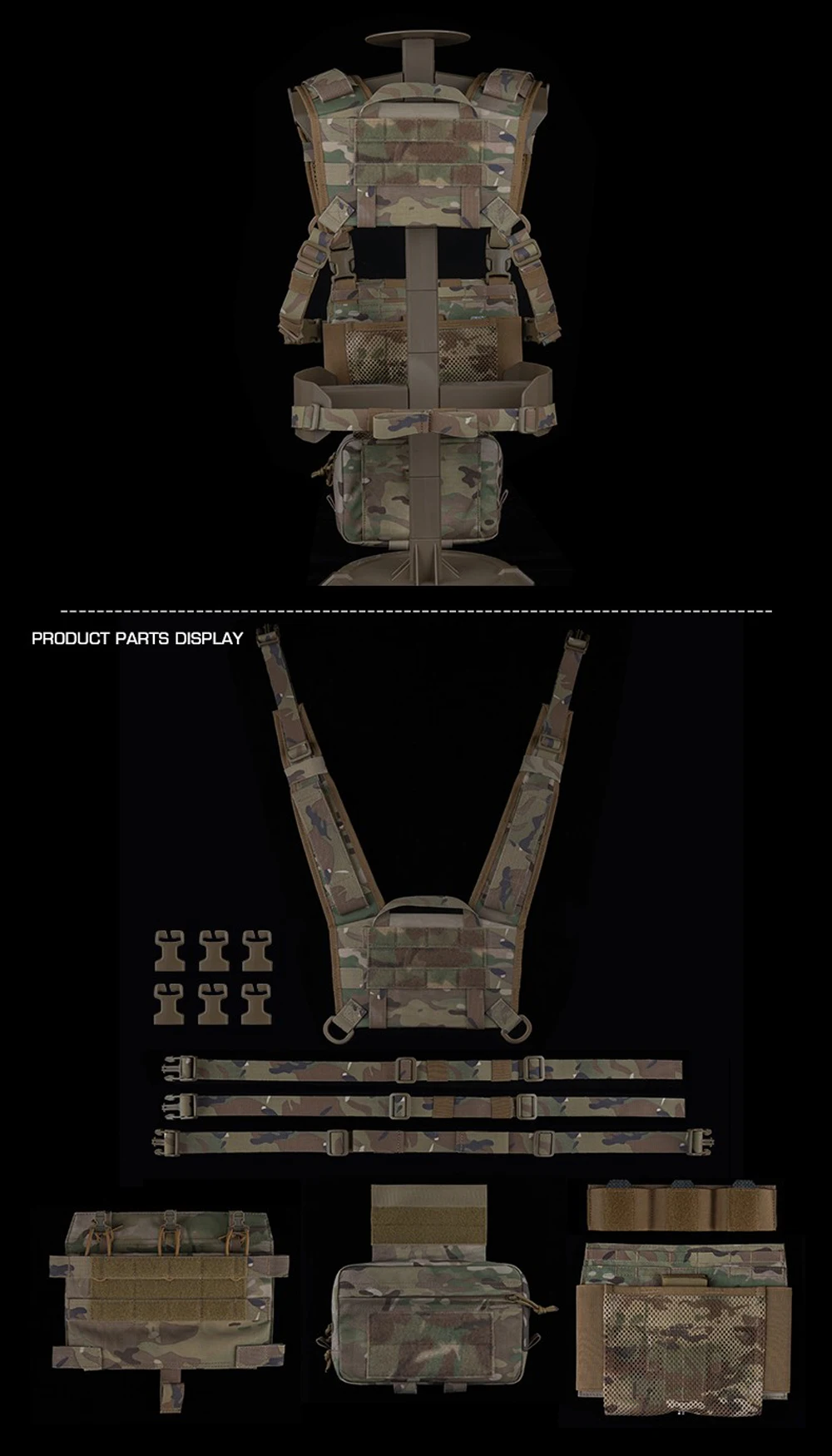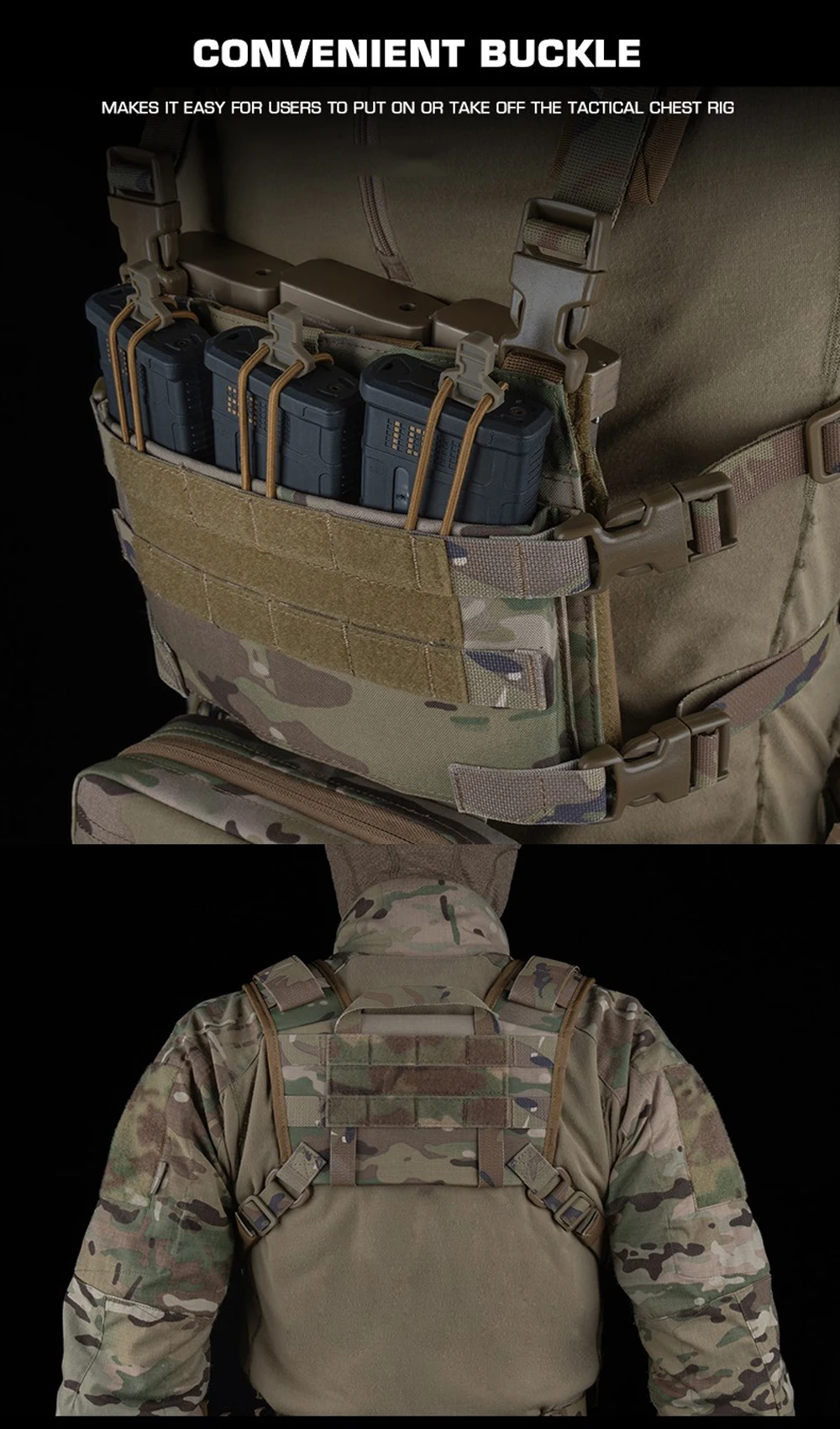 MOLLE-Equipo táctico para el pecho, conjunto de serie R, chaleco de asalto de caza Airsoft estilo Crye con 6 uds., bolsa Mag de almacenamiento, bolsa colgante
