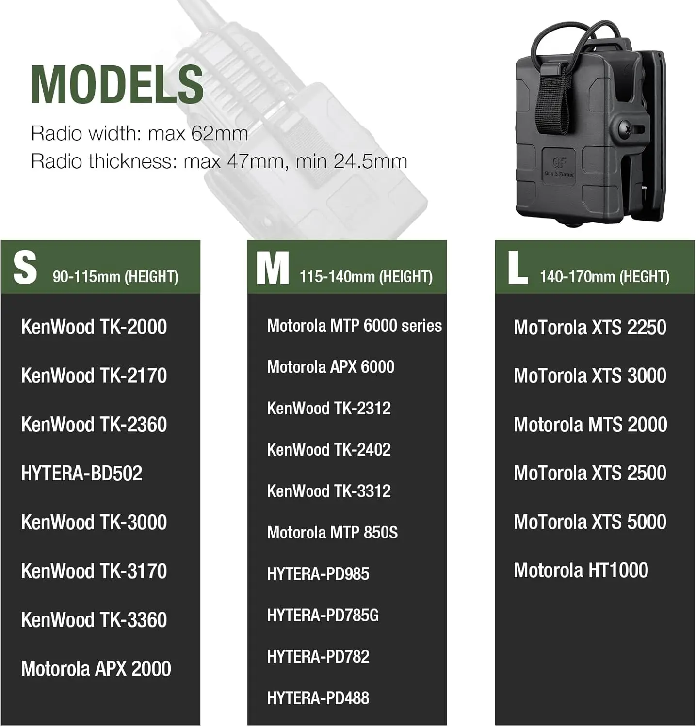 Molle – Negro duradero para radios, ajuste seguro, fácil fijación para uso en exteriores, tácticos y de trabajo