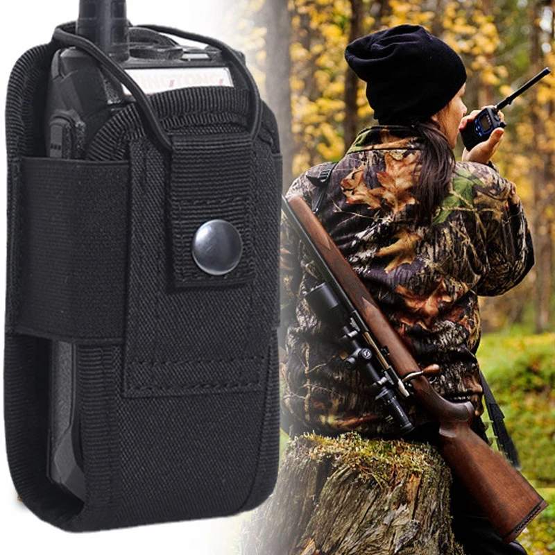 Funda universal multifunción para walkie talkie transceptor de radio. La bolsa Talkie hecha de nailon con un cordón elástico y cierre de seguridad, Esta bolsa es extremadamente duradera y práctica.
