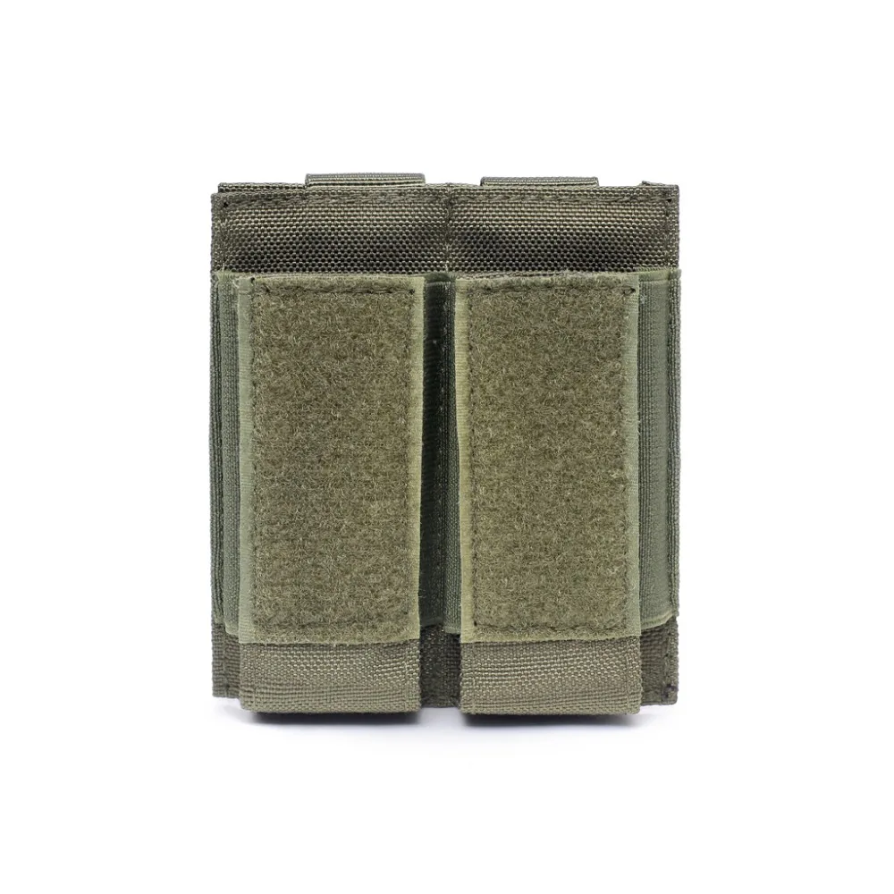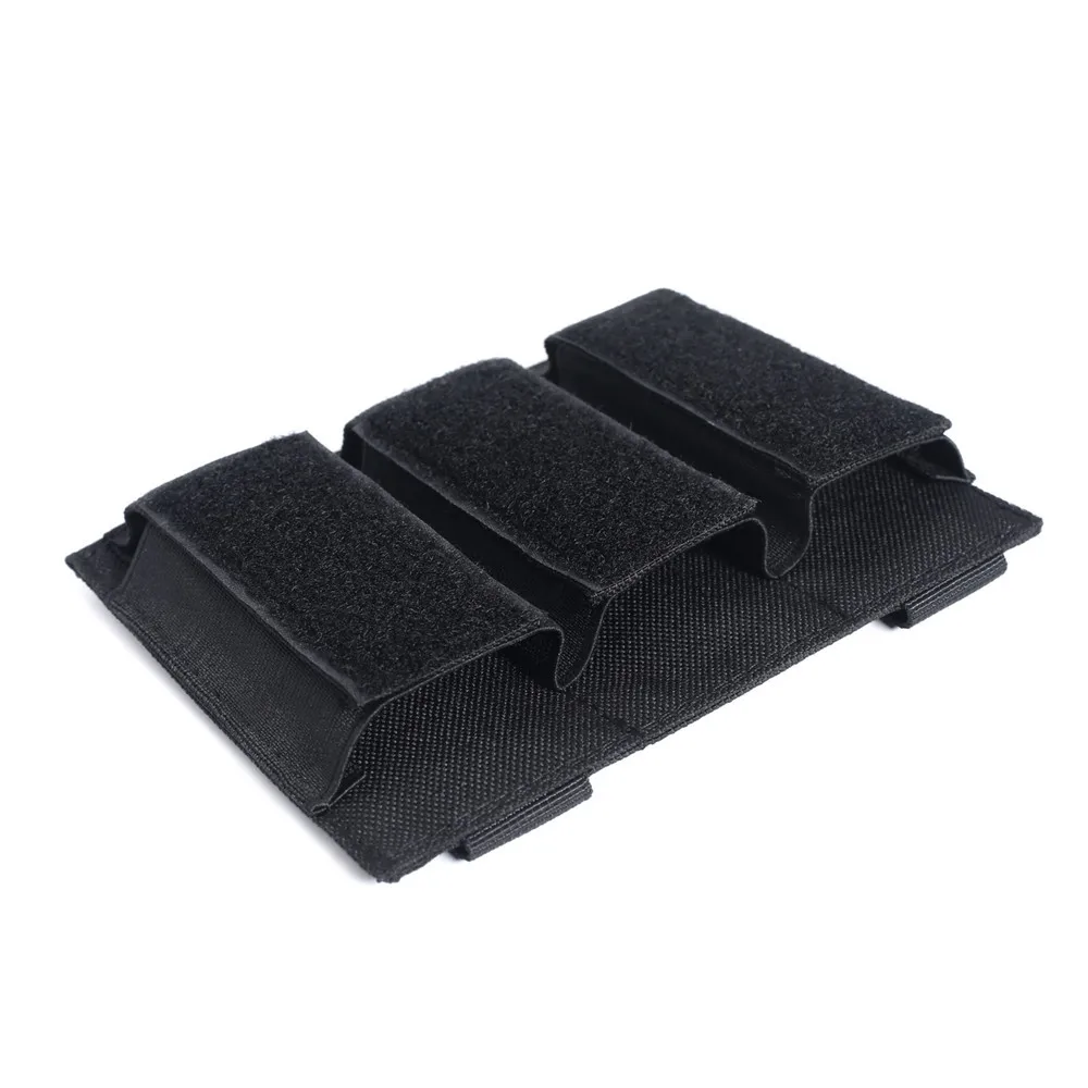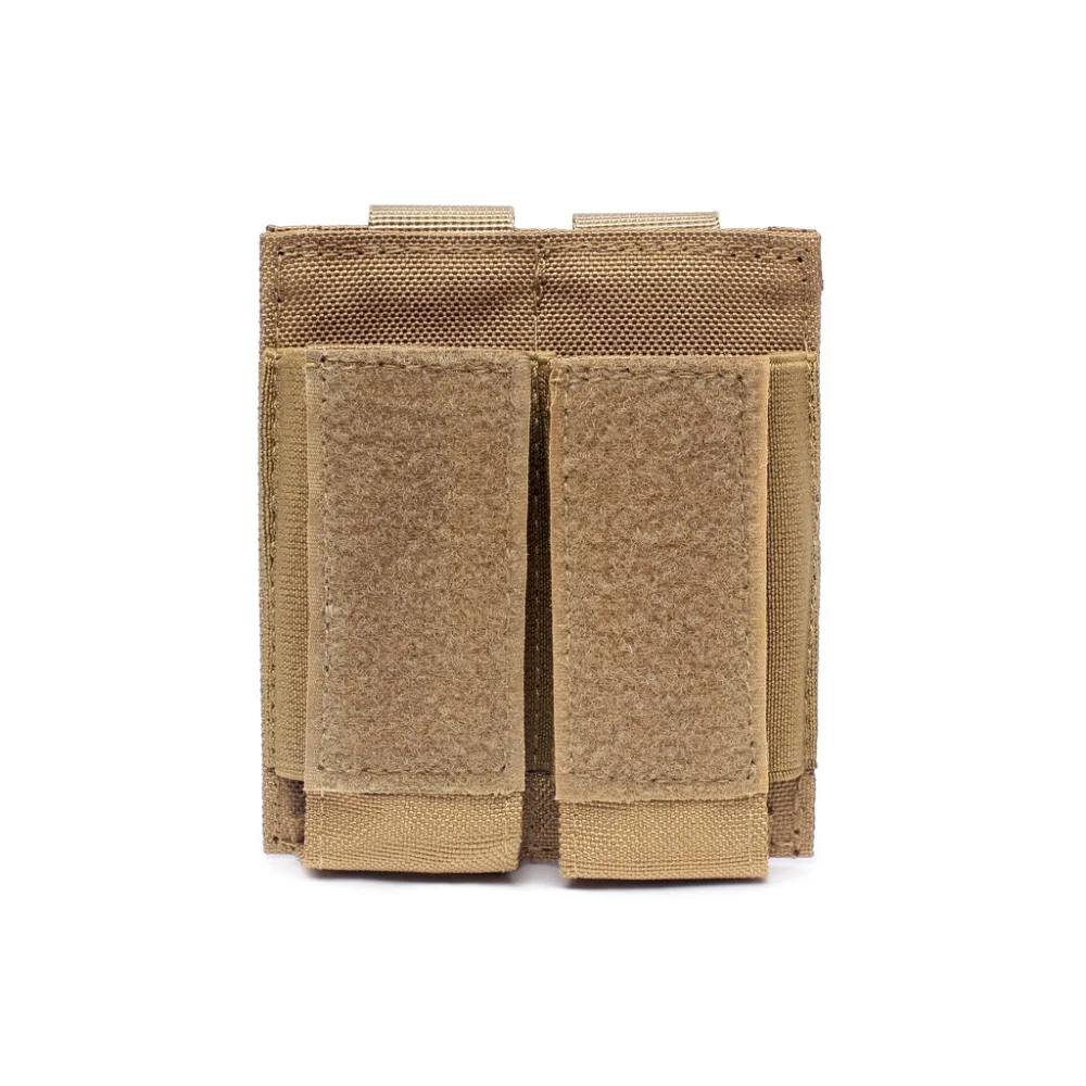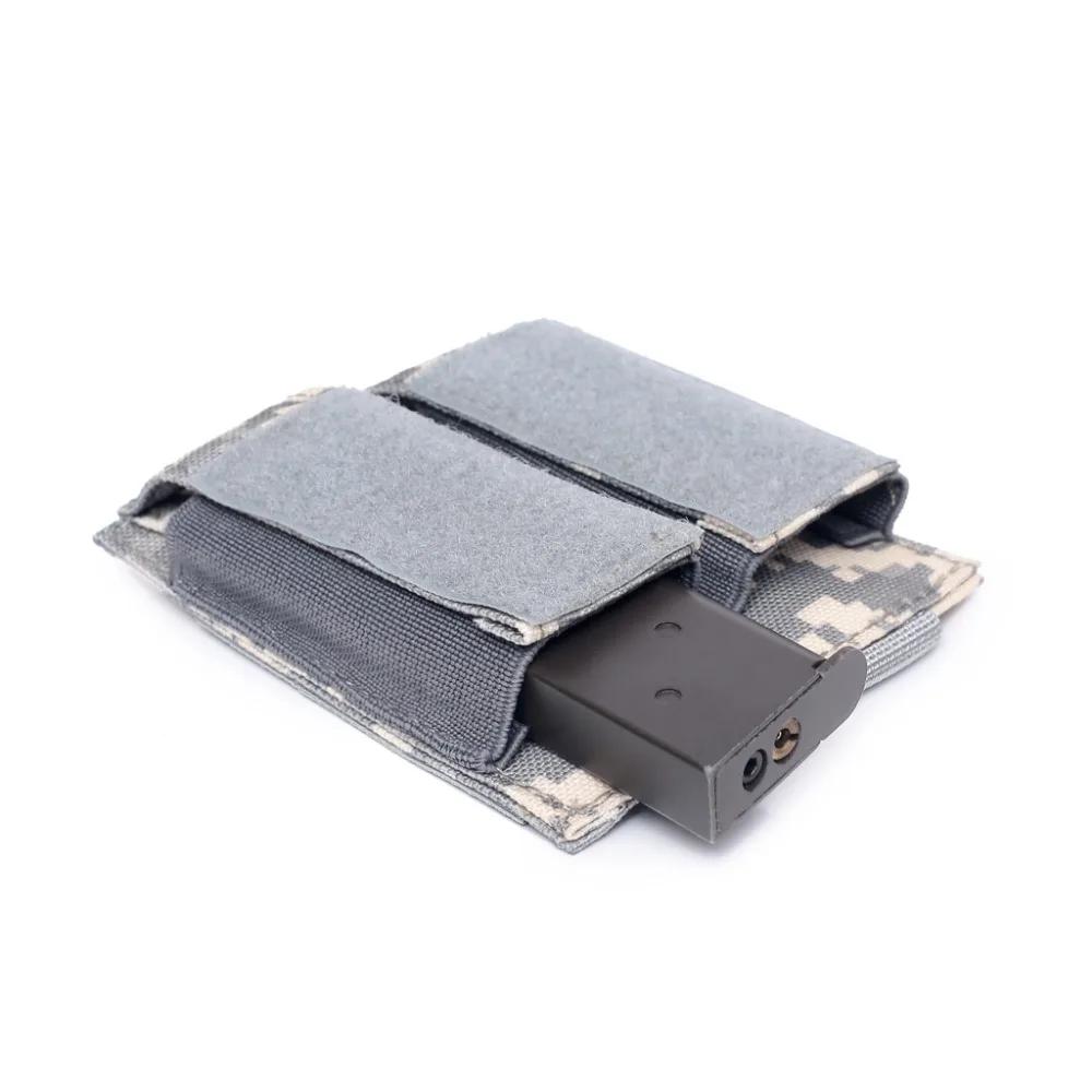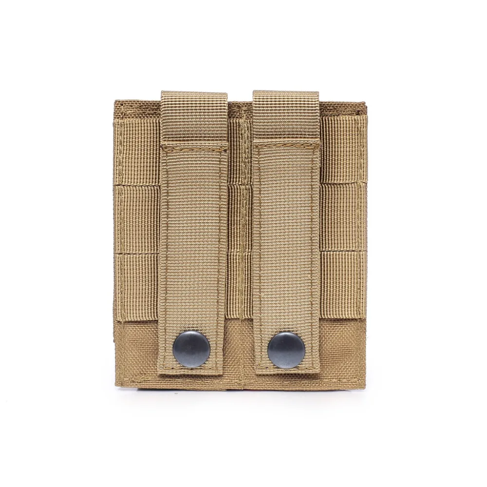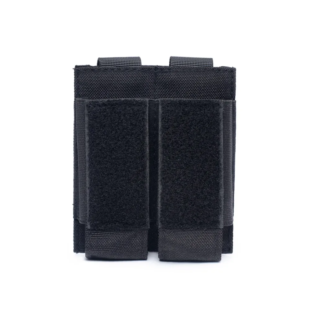 Material: nailon 1000D Tamaño: Doble-10*2,8*11,3 cm/3,9*1,1*4.5in Triple-11,8*15*1,8 cm/4,65*5,90*0.7in Peso: 2, 2, 1, 2, 2, 1, 2, 2, 2 Diseño de vástago Molle. Puedes sujetarlo al chaleco, cinturón, mochila. La bolsa doble puede contener linterna, cuchillo u otros dispositivos.