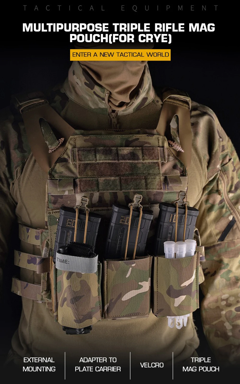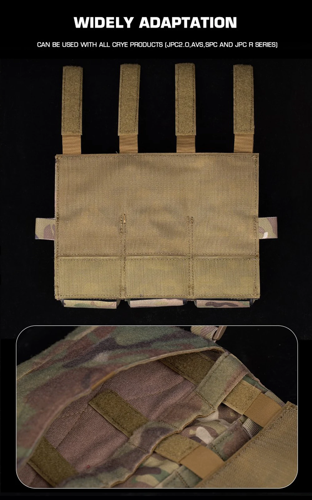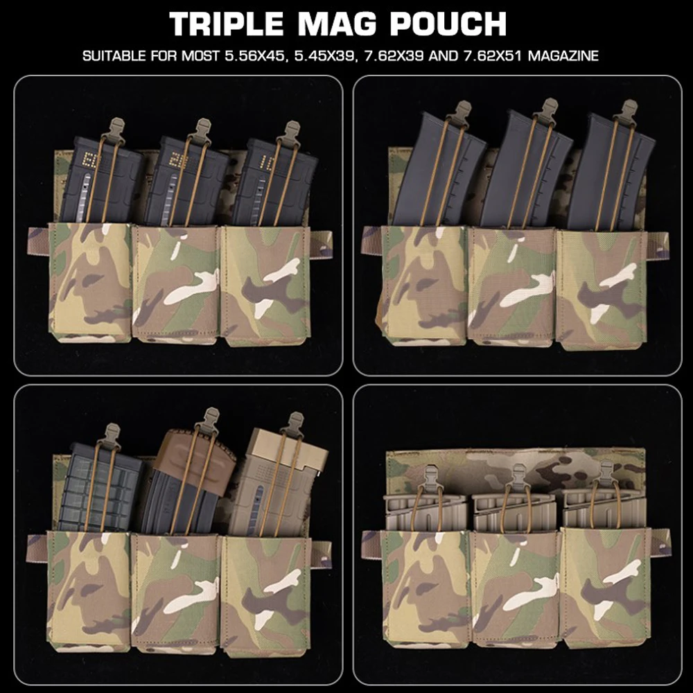 MOLLE Tacticl-bolsa Triple para Airsoft, chaleco de caza, portador de placa, Panel frontal M4 AR15 5,56/7,62 CRYE Mag, multiusos