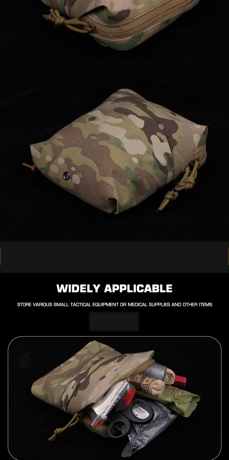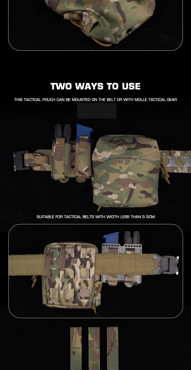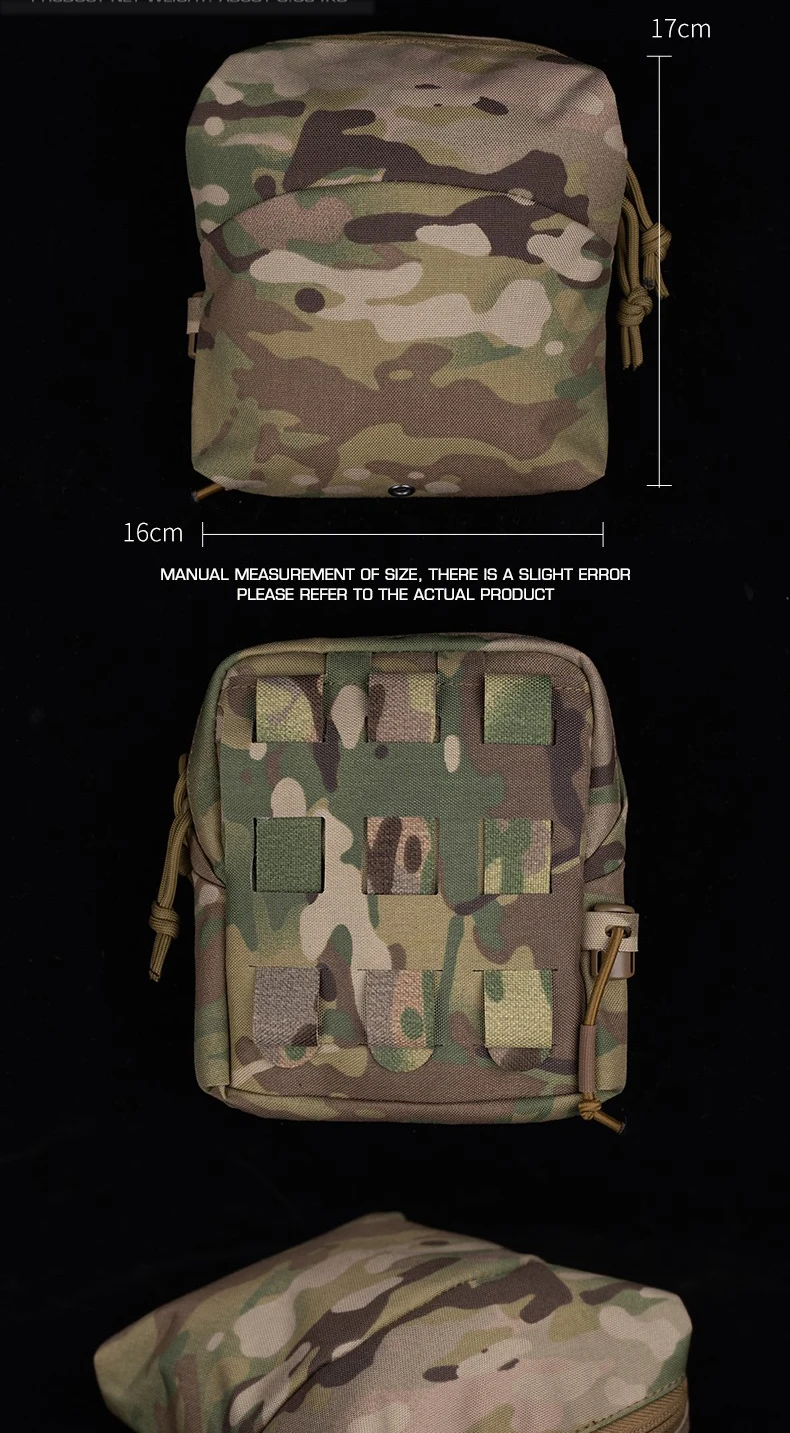 Nombre del producto: Bolsa táctica universal multifuncional (6X5 pulgadas)Tamaño del producto: 19*17*3cmColor del producto: negro mate/MC/MCBK/marrón coyote/verde Ranger/gris loboEl paquete incluye:1 * bolsa (no incluye otras)