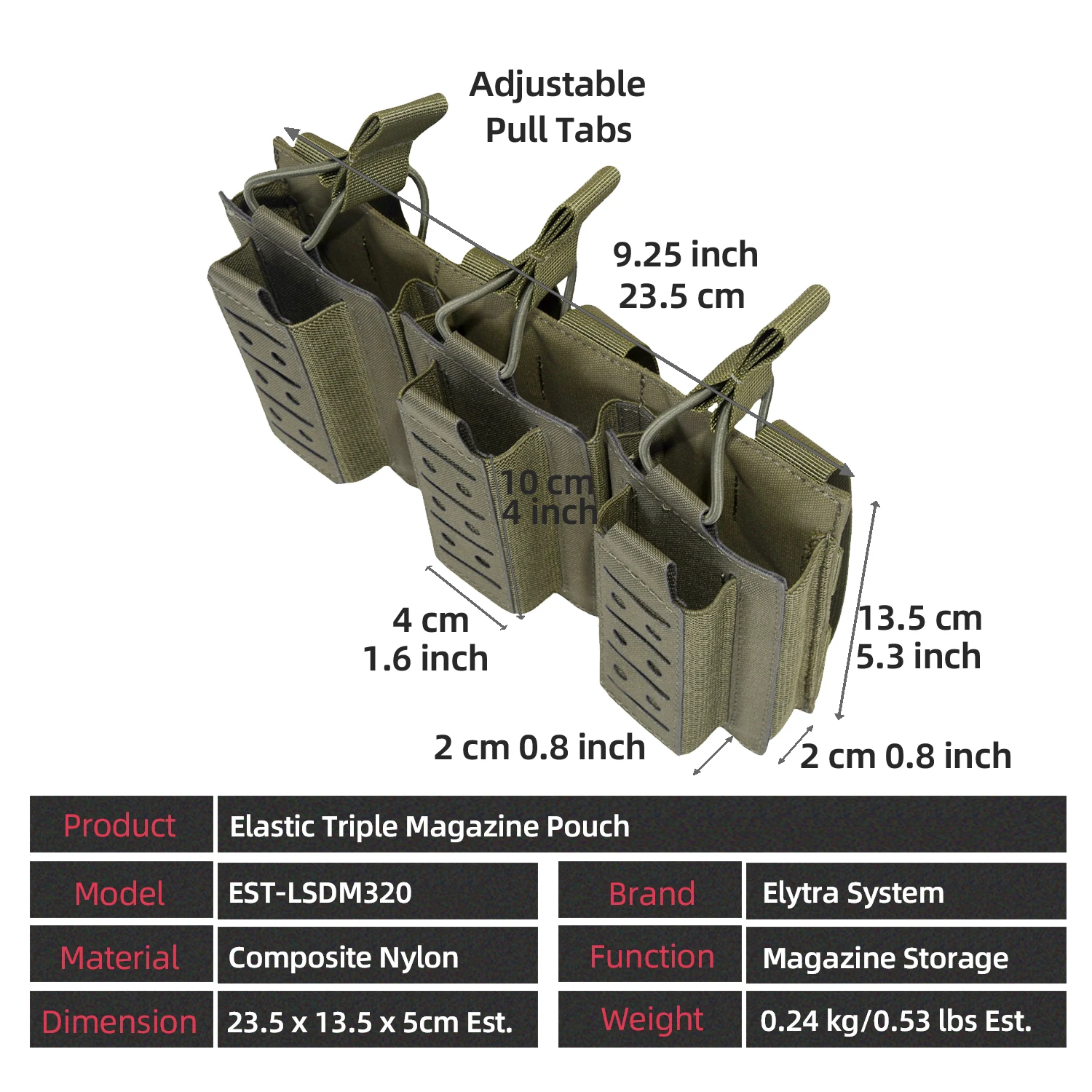2. Material compuesto de nylon con proceso de corte por láser, duradero. El diseño de ajuste elástico se adapta mejor al equipo y sus cargadores no se caen fácilmente