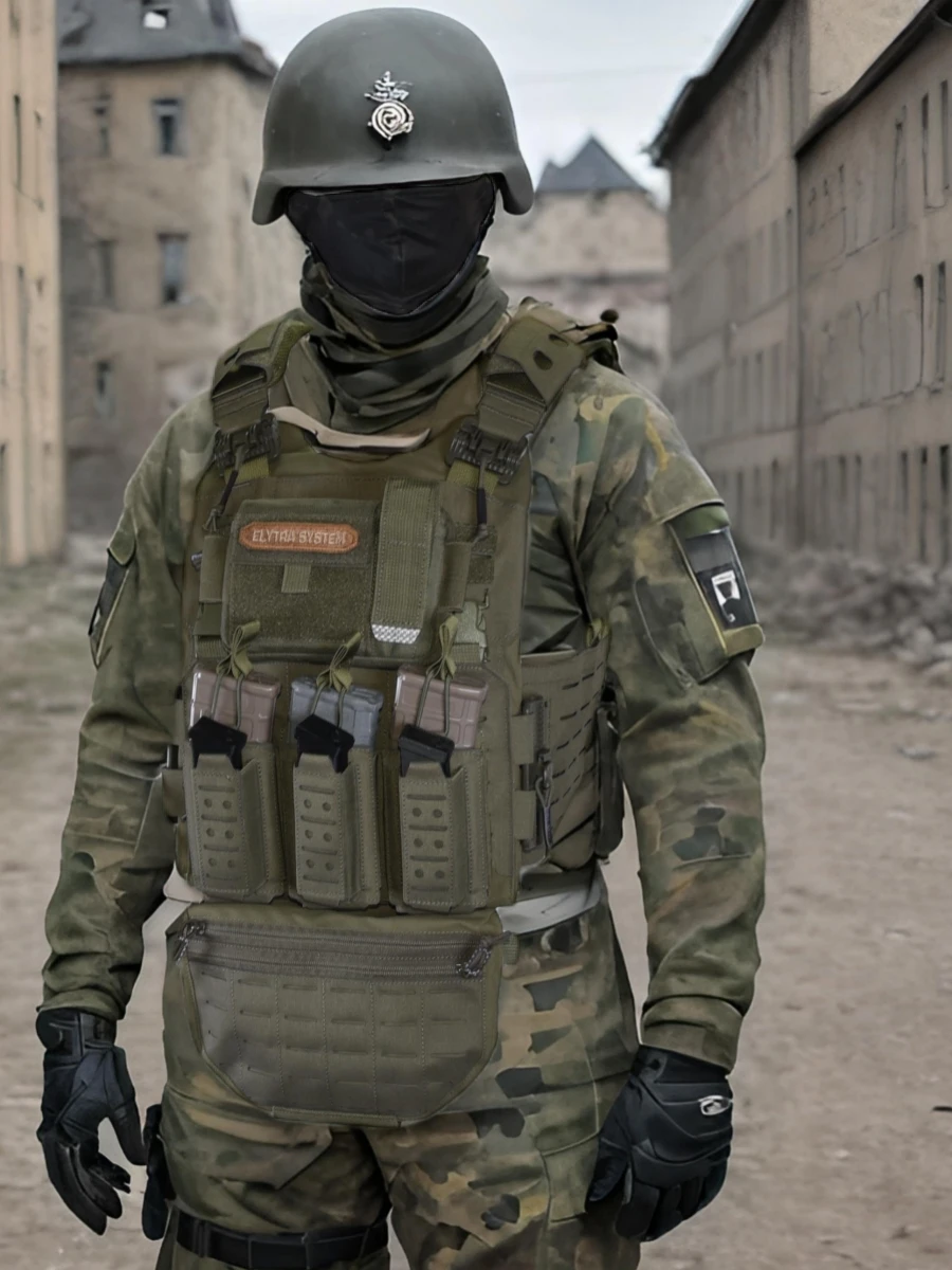 1. Diseño de doble capa de espacio, el compartimento trasero puede acomodar equipos de la serie AR (5,56) o de la serie AK (7,62), y el compartimento frontal puede acomodar varios equipos pequeños.