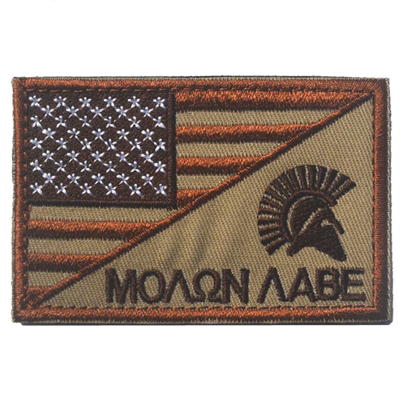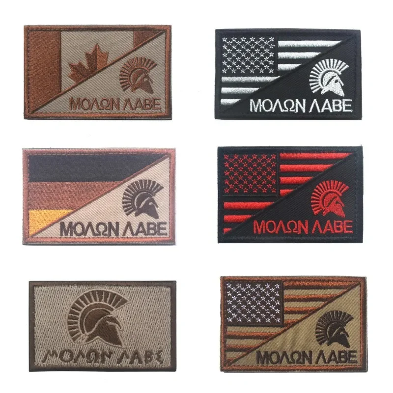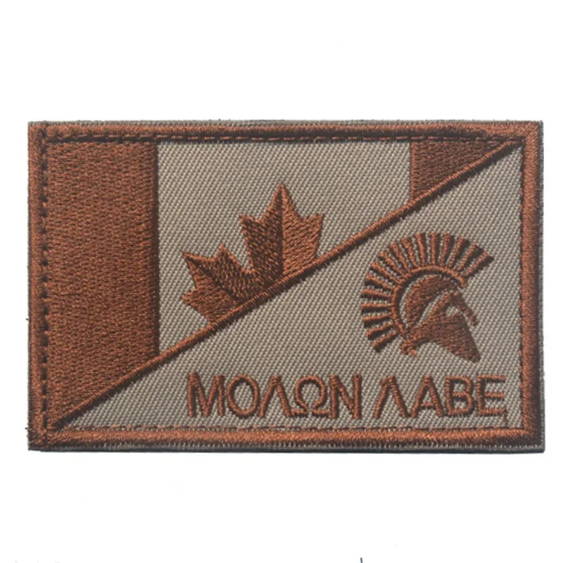 Parche bordado MOLON LABE Spartan, insignia de la bandera canadiense de EE. UU., parches de gancho y bucle, chaqueta, mochila, pegatina para ropa, parche militar