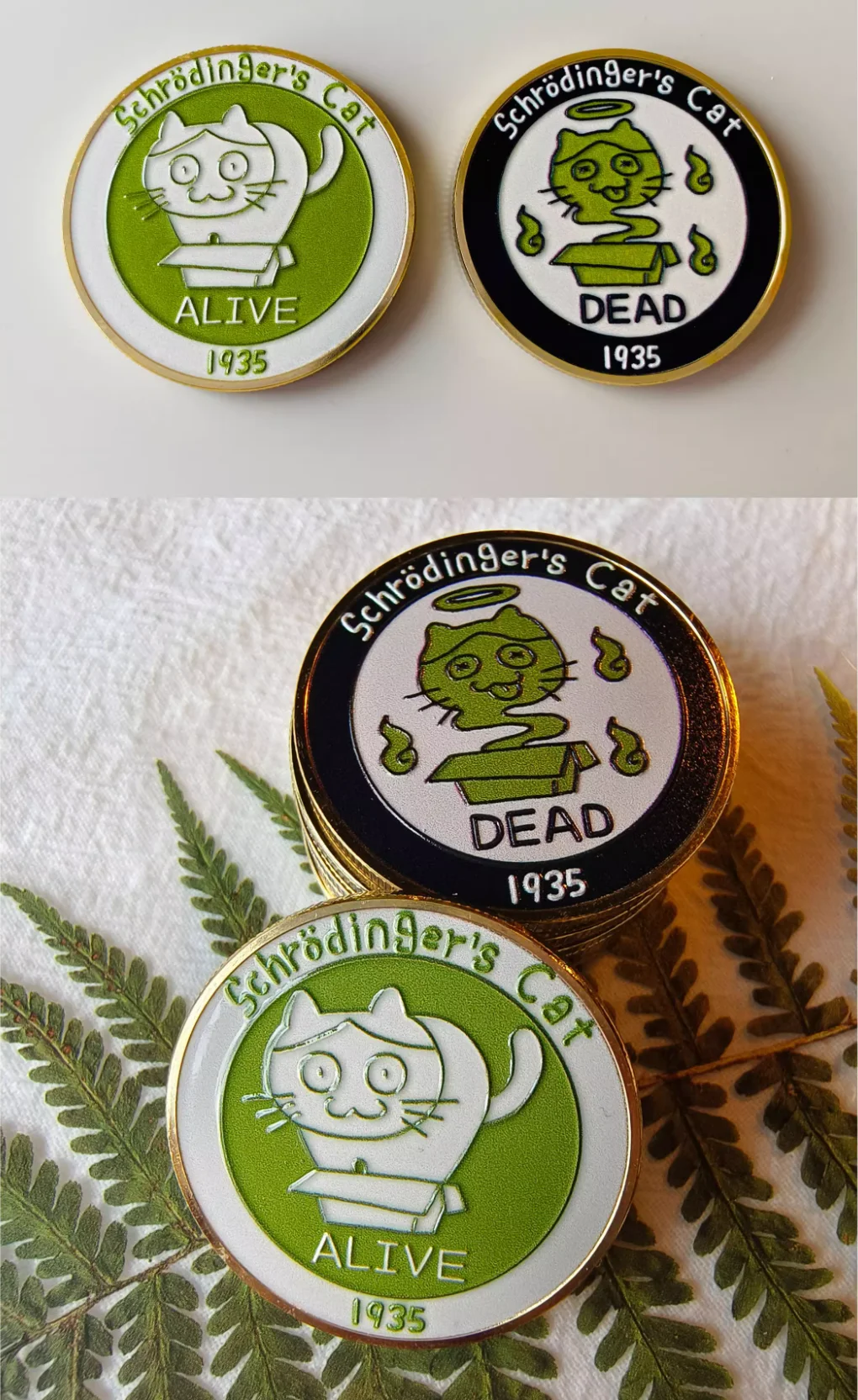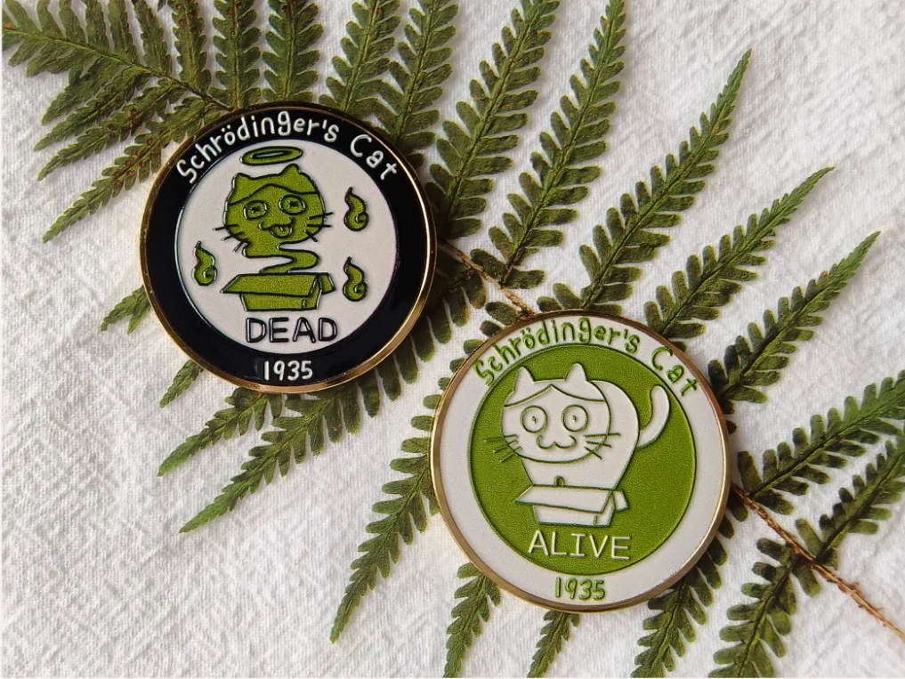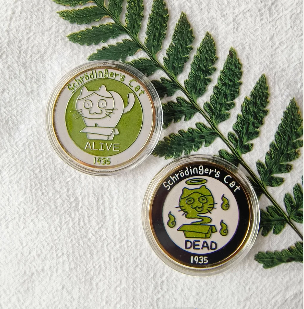 Moneda conmemorativa del gato de Schrodinger, regalo de cumpleaños creativo, pieza de decisión divertida y bonita, experimento simbolizando el pensamiento vivo o muerto