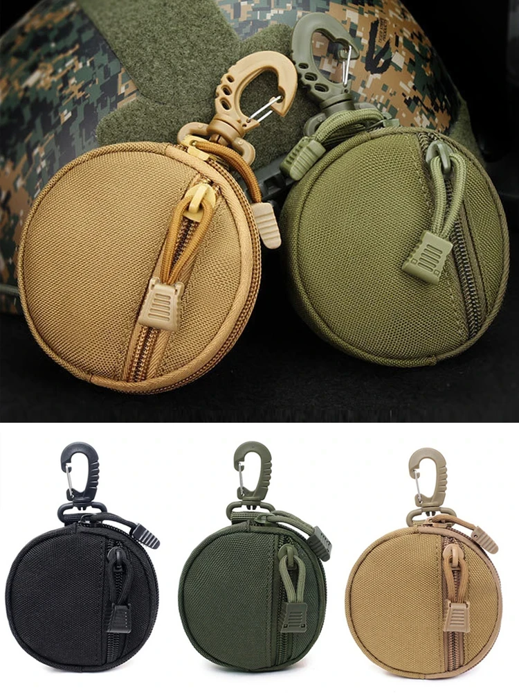 Monedero informal para hombre 1000D, Mini monedero portátil para dinero, soporte para llaves, riñonera, estuche pequeño redondo con cremallera