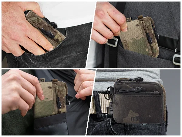 Múltiples opciones de transporte: con un llavero y un anillo en D lateral, esta billetera con cremallera se fija fácilmente a mochilas, presillas para cinturón o bolsos.La parte posterior tiene dos correas de gancho y bucle para una fijación segura a cinturones o equipo táctico.