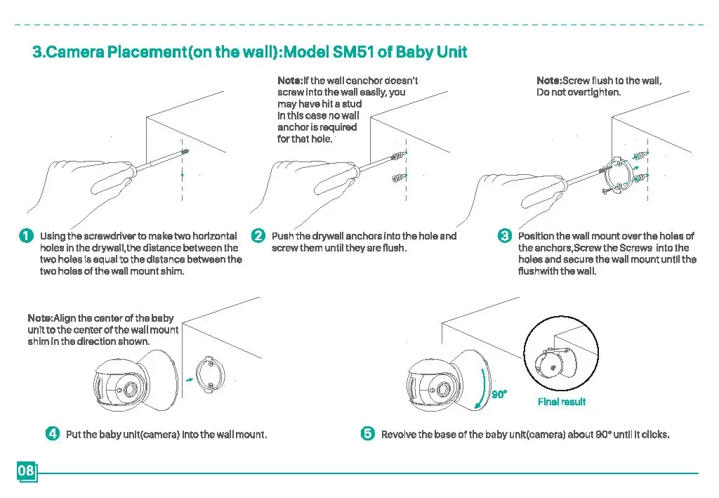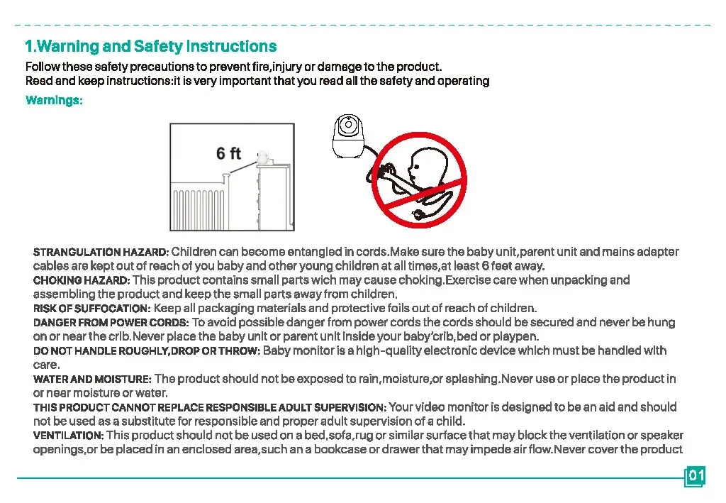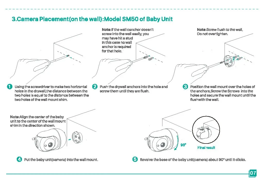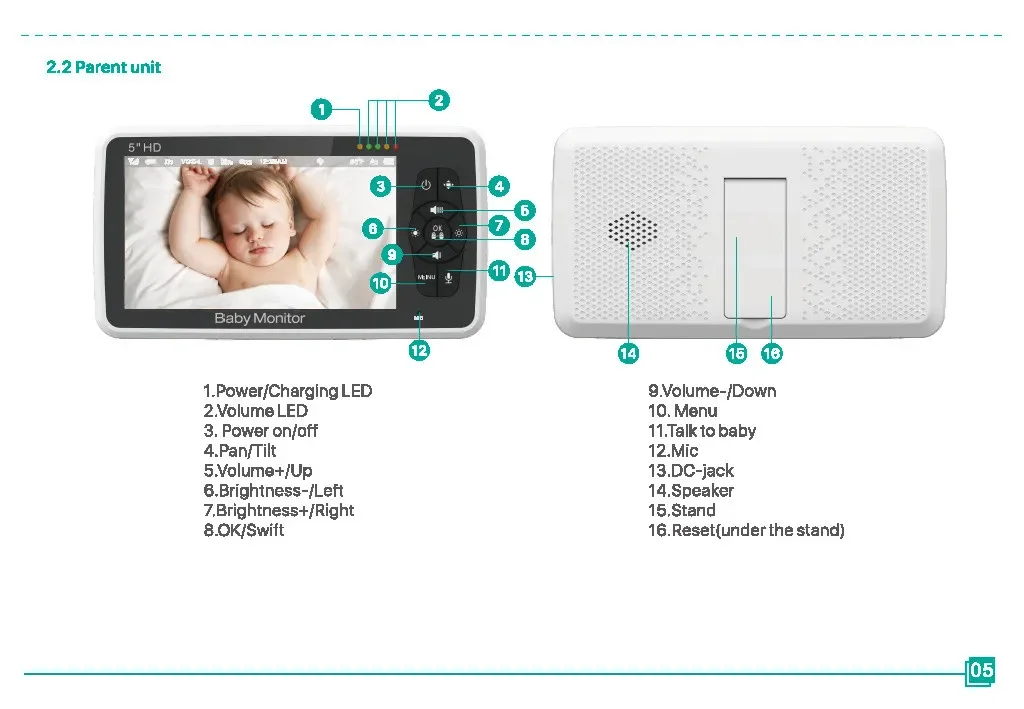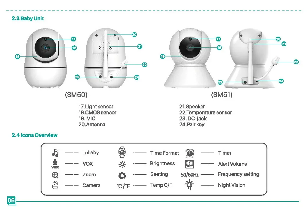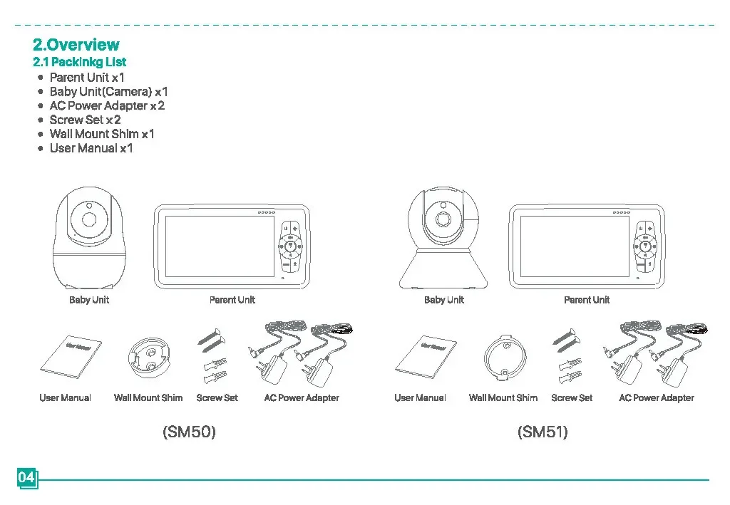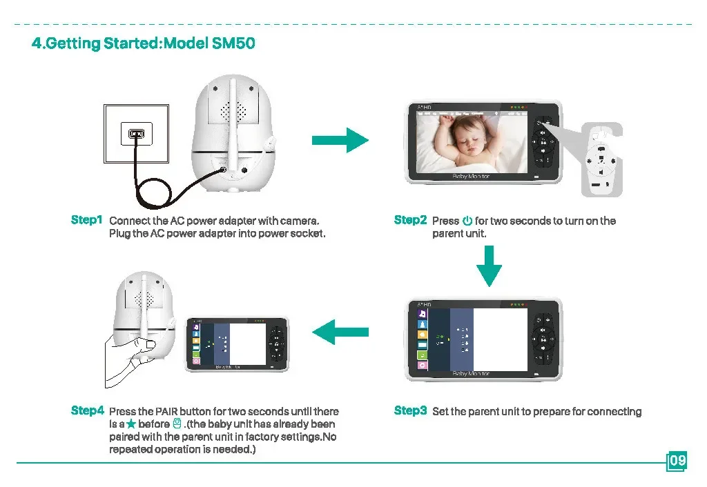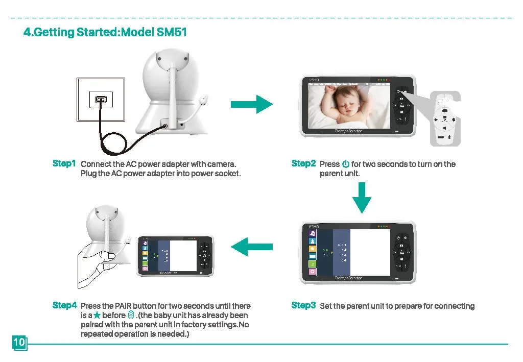 Monitor de bebé SM50, Monitor de bebé giratorio HD de 5 pulgadas, cámara inalámbrica con cabezal móvil, intercomunicador de visión nocturna, canción de cuna, seguridad para bebé