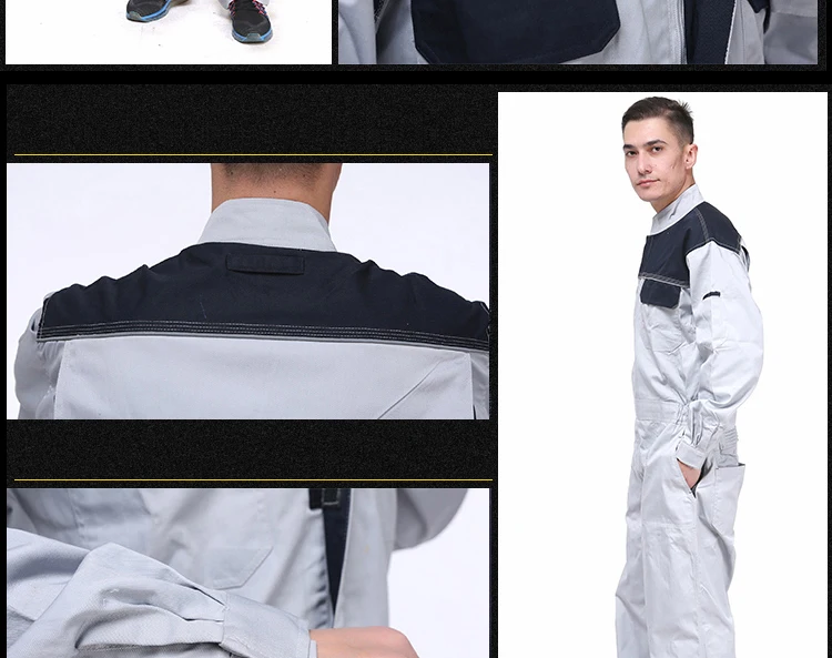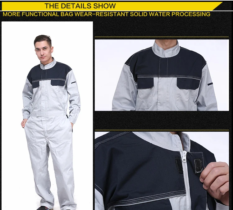 Mono de algodón 100% para hombre, traje de trabajo, ropa de trabajo de minería, mono para reparador de carpintero mecánicoDescripción :*4 colores opcionales: azul; gris claro; Gris; caqui*Tejido: sarga 100% algodón*Cremallera frontal con solapa a tormenta para sellar los elementos.*2 bolsillos en el pecho;2 bolsillos traseros*Tamaño: XS \S\M\L\XL\2XL(Consejos: si no está seguro del tamaño, envíeme un correo electrónico con su altura y peso, ¡con el tamaño de su pecho será mejor!)