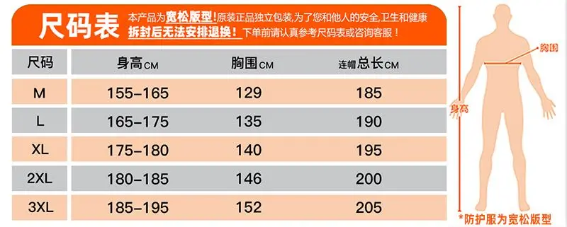1x traje protector químico