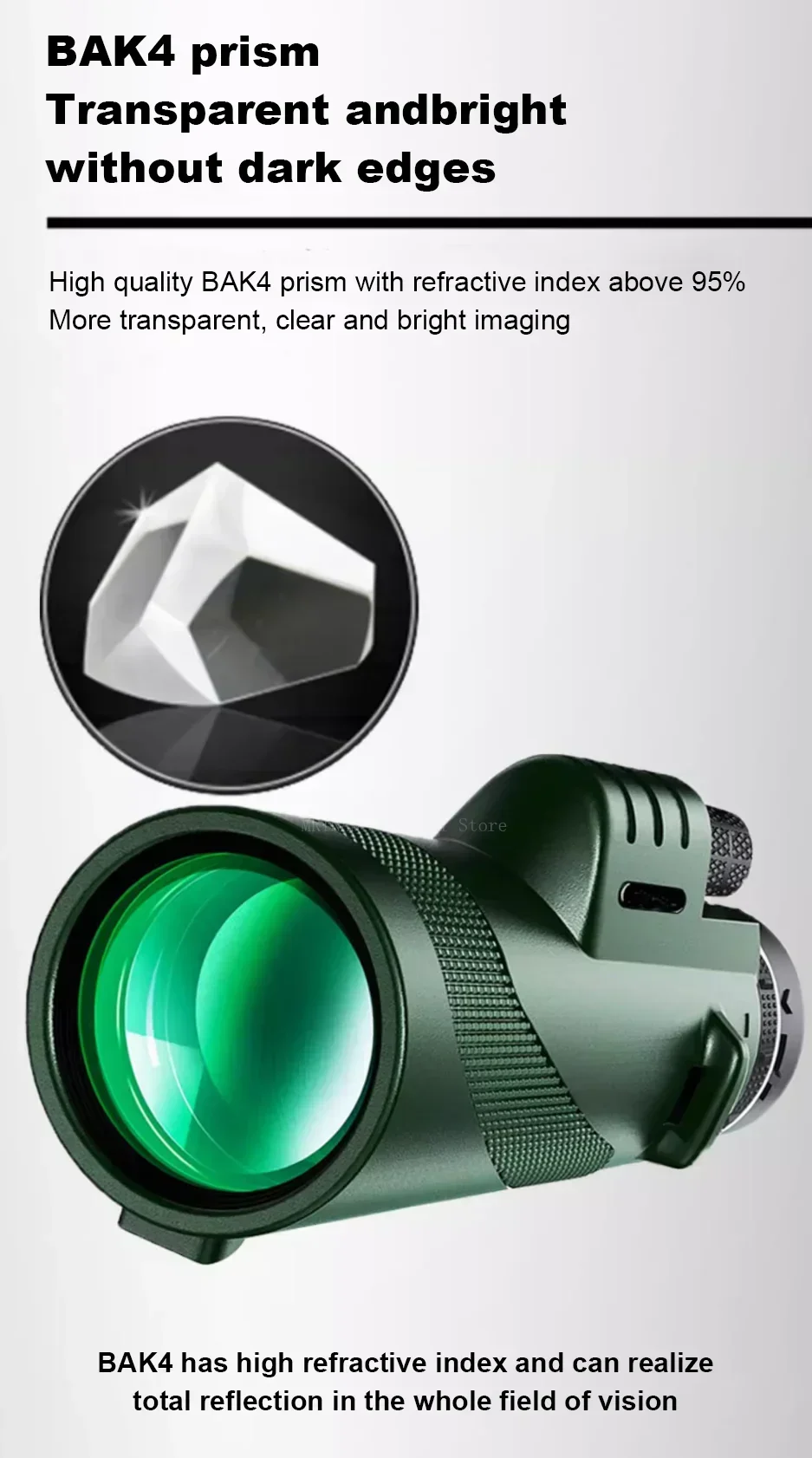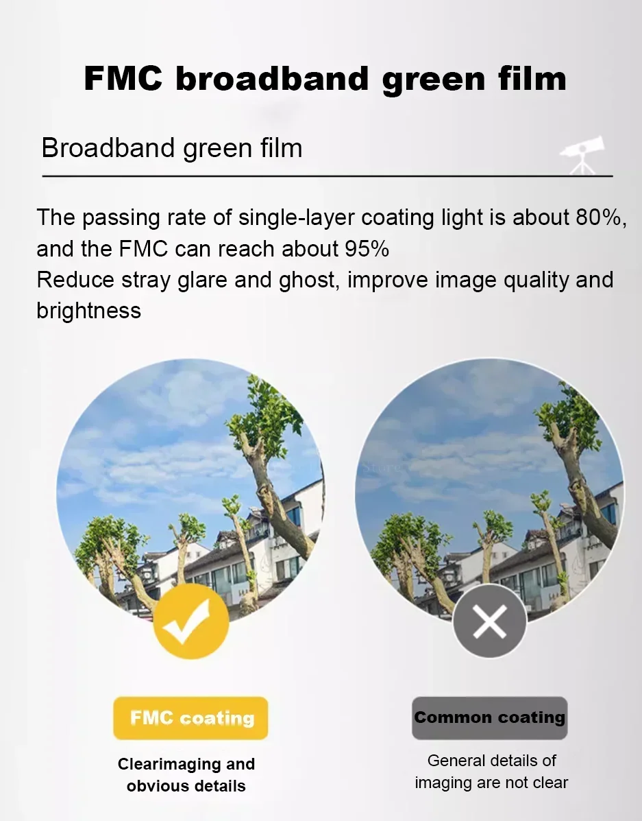 • Prisma BAK4: Equipado con un prisma BAK4, este telescopio ofrece imágenes brillantes y de alto contraste, mejorando su visibilidad incluso en condiciones de poca luz.