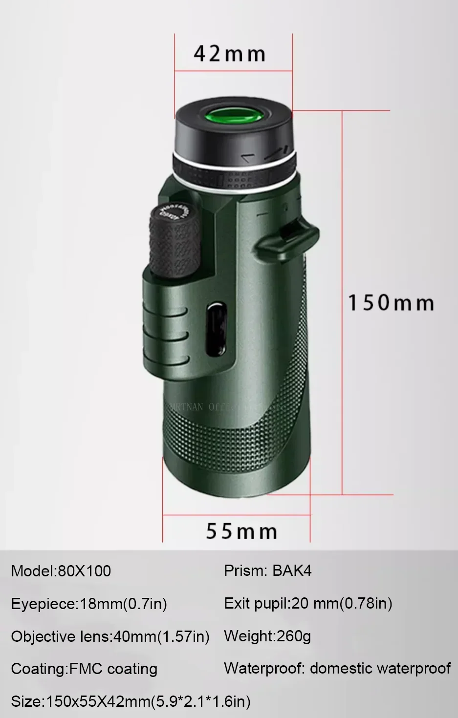 Nombre: monocular portátil con aumento de 80x100