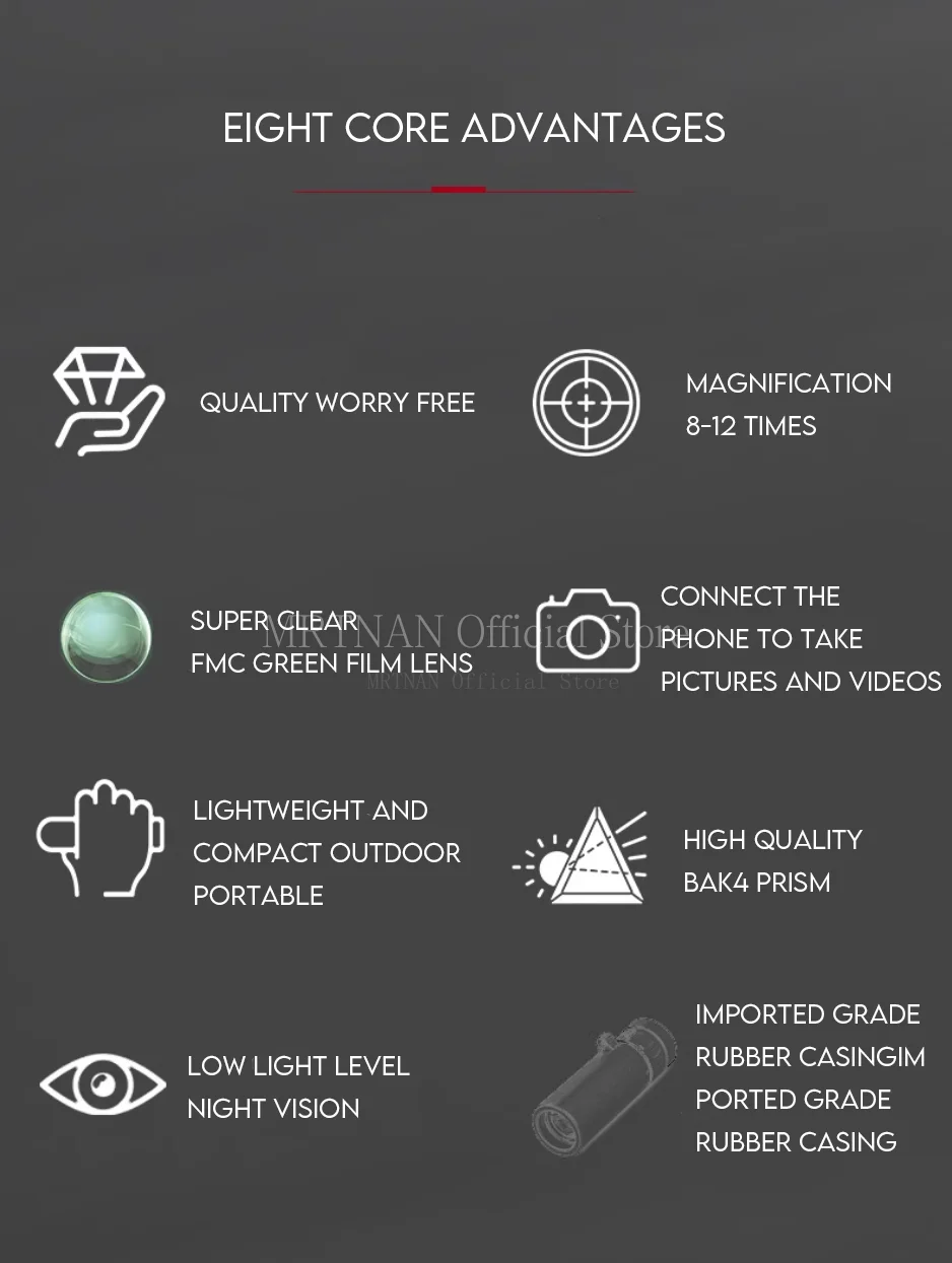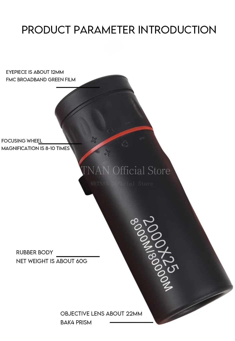 Telescopio, alta definición, uso dual diurno y nocturno, luz baja, tubo único portátil no infrarrojo