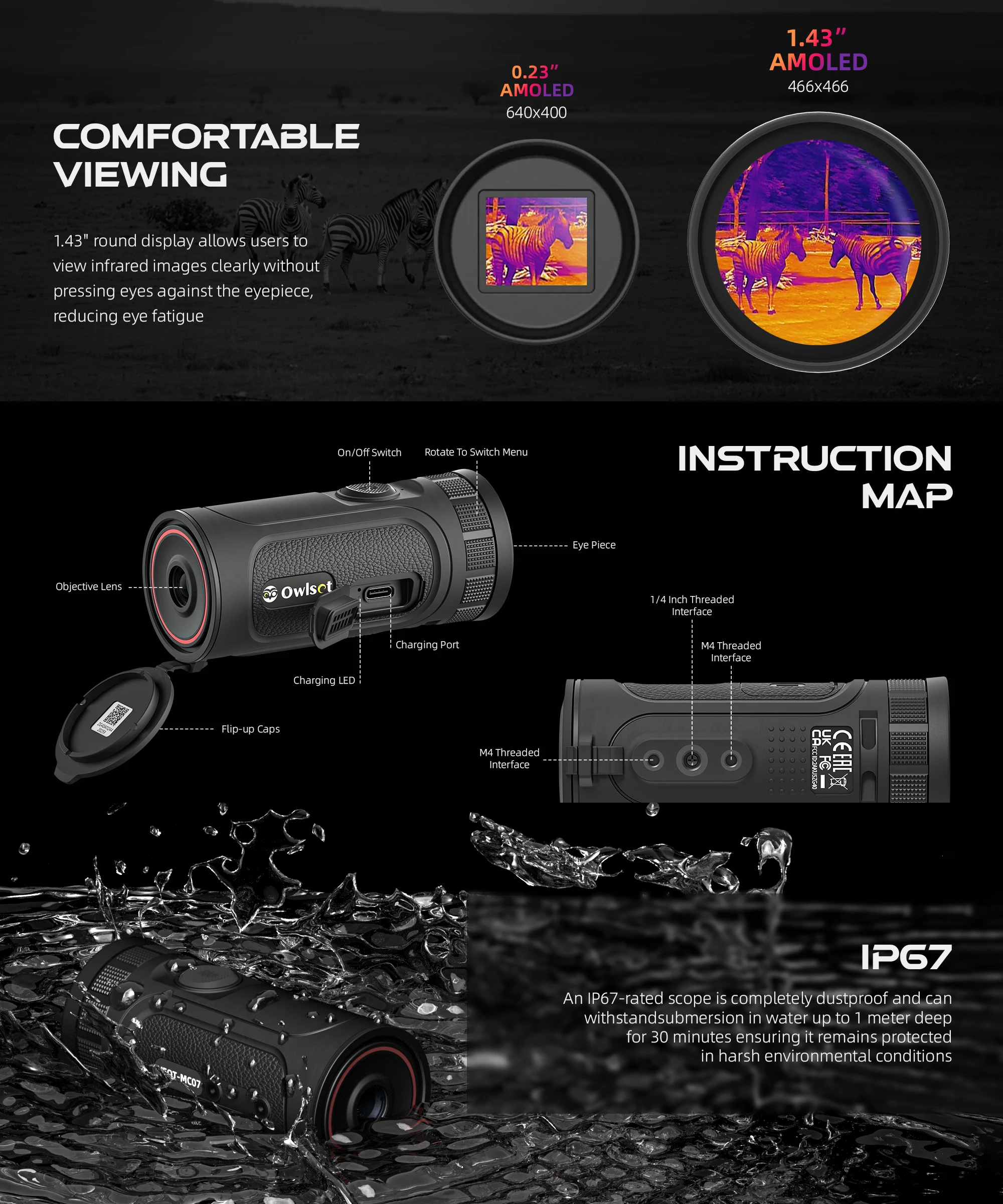 · El detector infrarrojo VOx de 12 μm con resolución de 256 × 192 presenta imágenes claras y nítidas