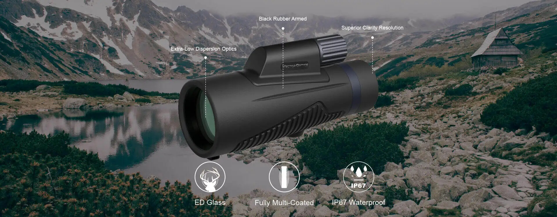 Diseño duradero:El monocular cuenta con una cubierta de goma, que ofrece una excelente resistencia a los golpes y un agarre antideslizante, lo que lo hace adecuado para varios entornos al aire libre. Además, cumple con el estándar de impermeabilidad IPX7, lo que permite su uso en condiciones húmedas.