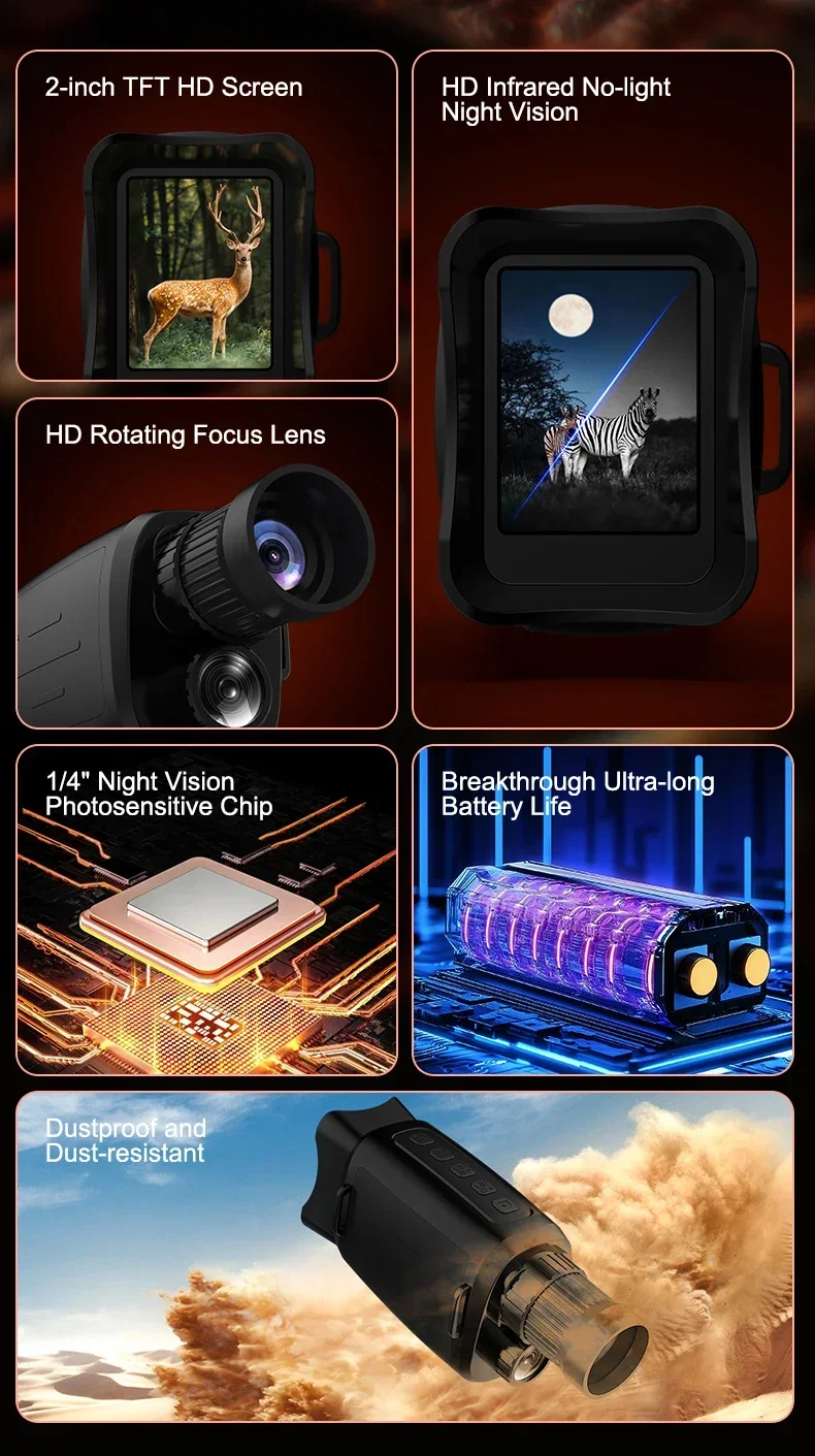 Batería de litio súper grande incorporada de 2000 mAh: garantiza un uso prolongado y reduce el problema de la carga frecuente. Lente de alta calidad: proporciona capacidades claras de grabación de imágenes y videos. Diseño duradero: adecuado para todos los entornos exteriores para garantizar un rendimiento estable.