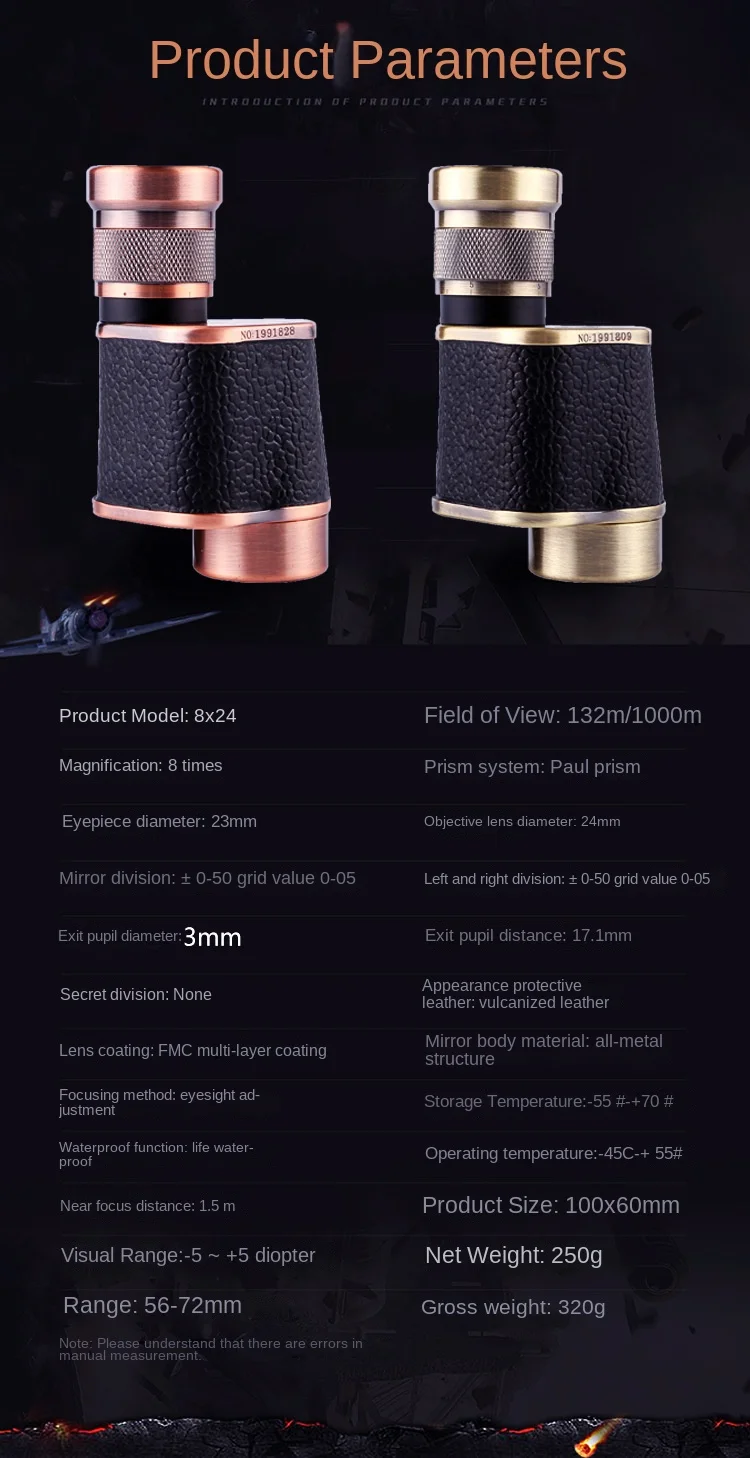 Monoculares rusos de gran alcance, Telescopio militar portátil profesional con estructura de Metal, lente óptica para acampar, 8x24