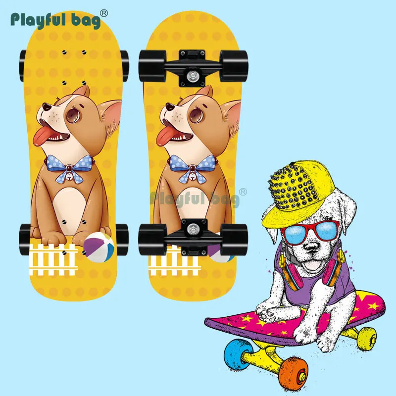 Monopatín para perros y gatos, cepillo de cabeza grande, rueda de calle, soporte de Metal para exteriores, patrón de dibujos animados AMB101
