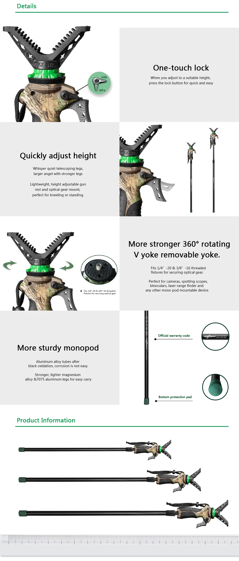Palo de tiro con gatillo de monopié de caza, accesorios de caza, Control de un mango, palos de escalada telescópicos para Airsoft, 1 unidad