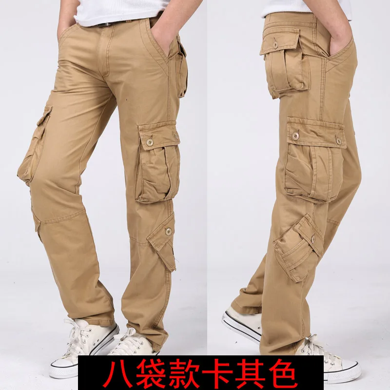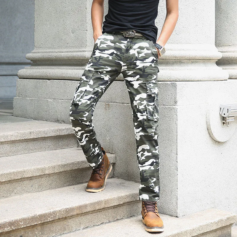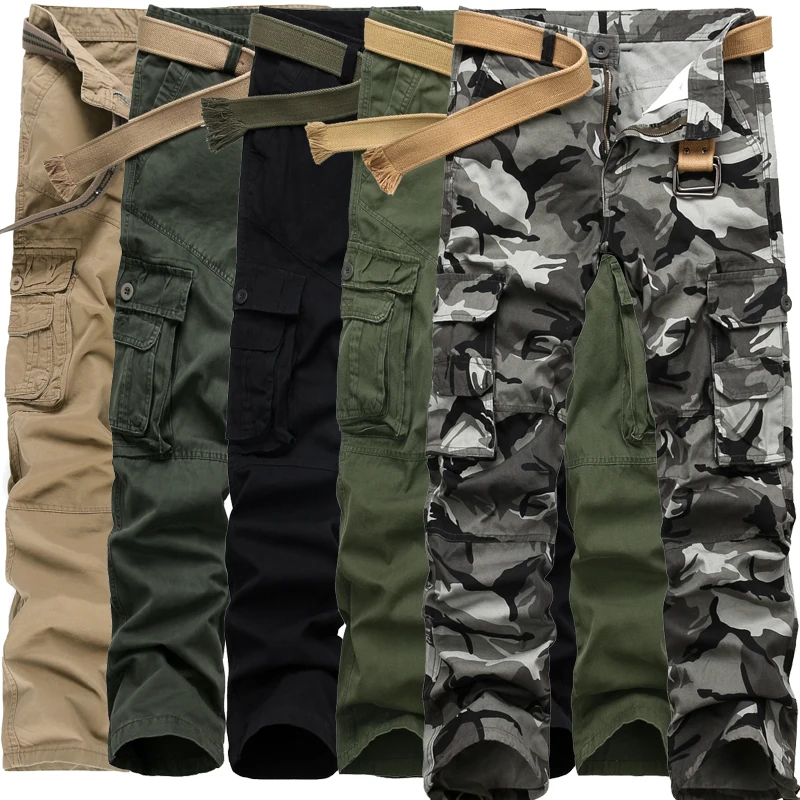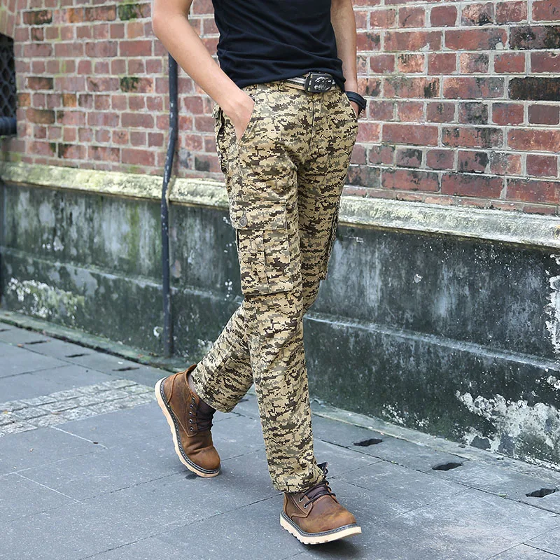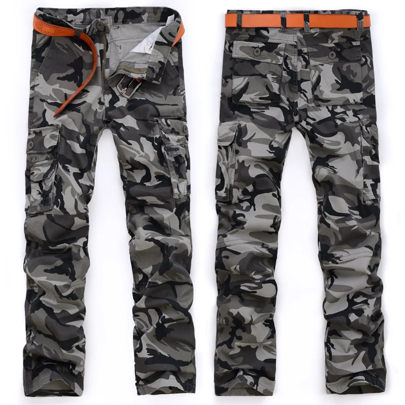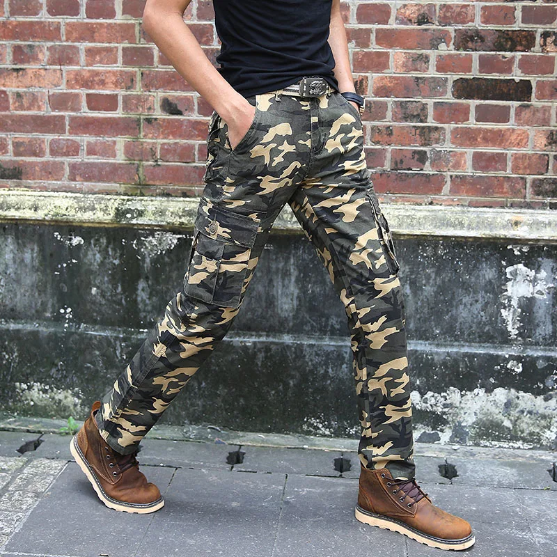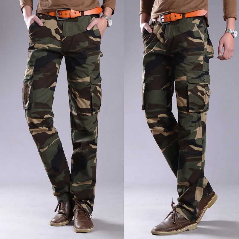 Hombres al aire libre verano deportes escalada algodón camuflaje overoles pantalones delgados sueltos rectos multi bolsillo pantalones largos