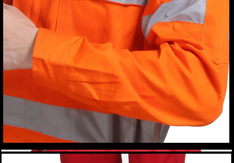 Descripción :5 colores opcionales: Naranja; Rojo; Azul; Blanco; DoradoTejido: sarga 100% algodónCremallera frontal con solapa a tormenta para sellar los elementos.Cinta reflectante de 5 cm de ancho para seguridad de alta visibilidad2 bolsillos en el pecho; 2 bolsillos traseros