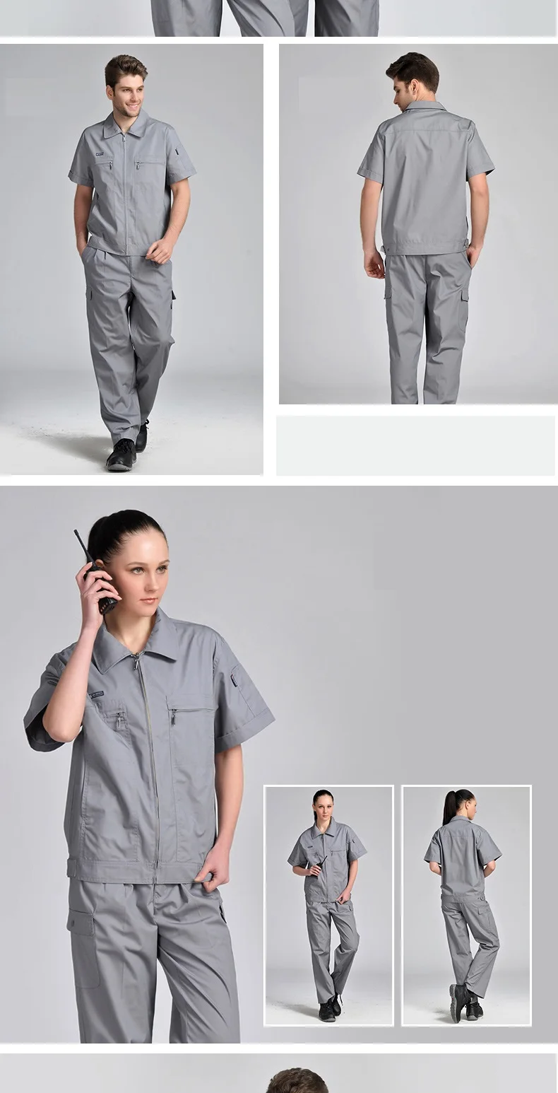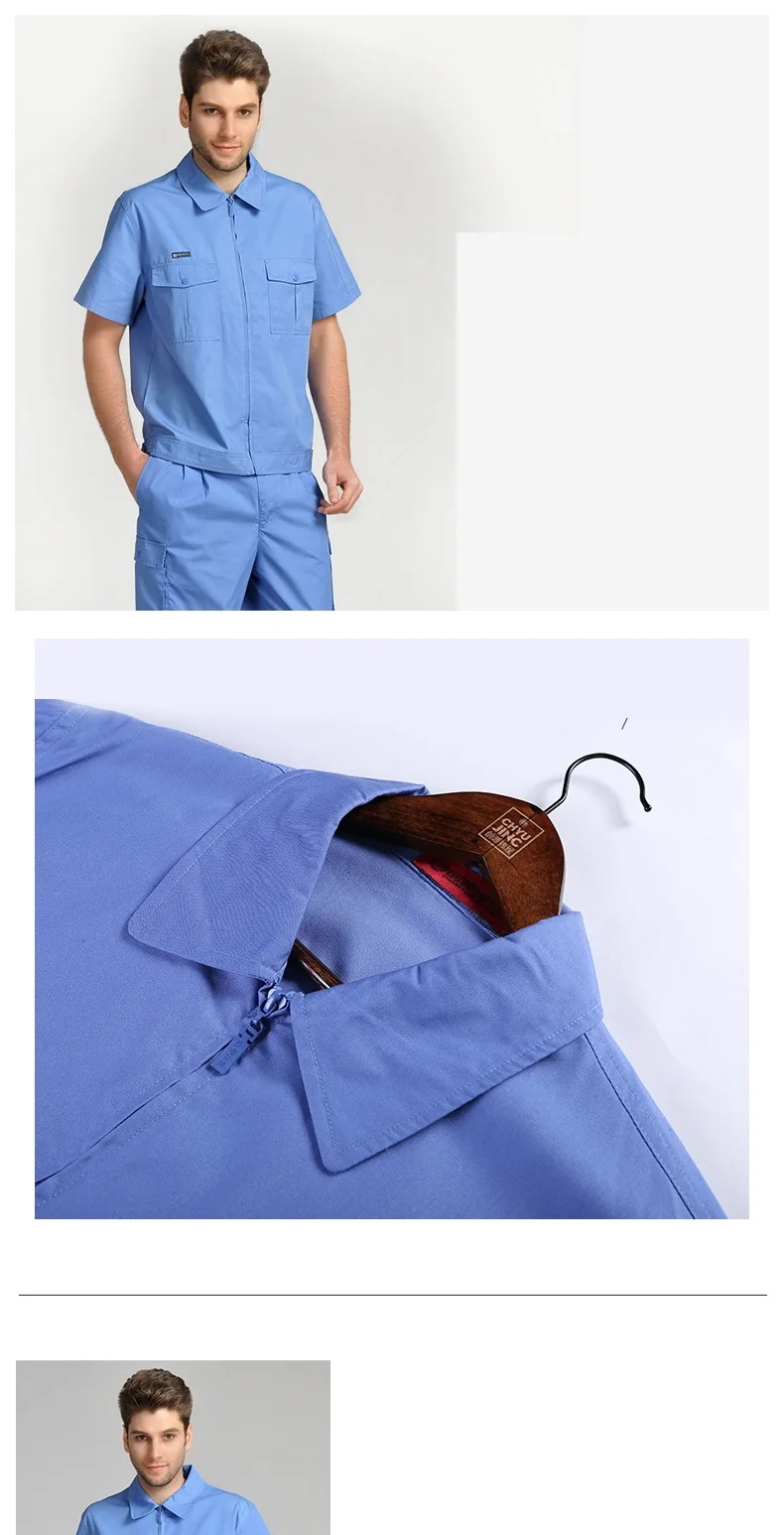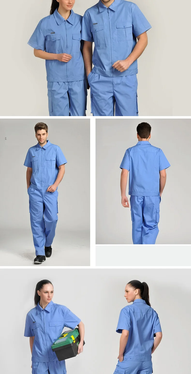 Monos de trabajo para hombre y mujer, uniformes de trabajo, mono de verano, traje de sección delgada para hombre, ropa corta transpirable resistente al desgaste de talla grandeOveroles de trabajo para hombres y mujeres, uniformes de trabajo, trajes de primavera y verano, conjunto de ropa de talla grande de manga corta resistente al desgaste transpirable fino, adecuado para limpiadores de talleres de reparación de automóviles de fábrica, etc.
