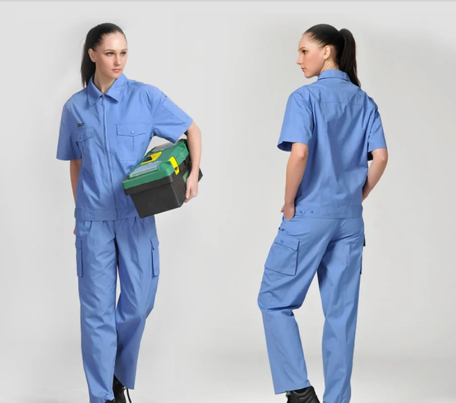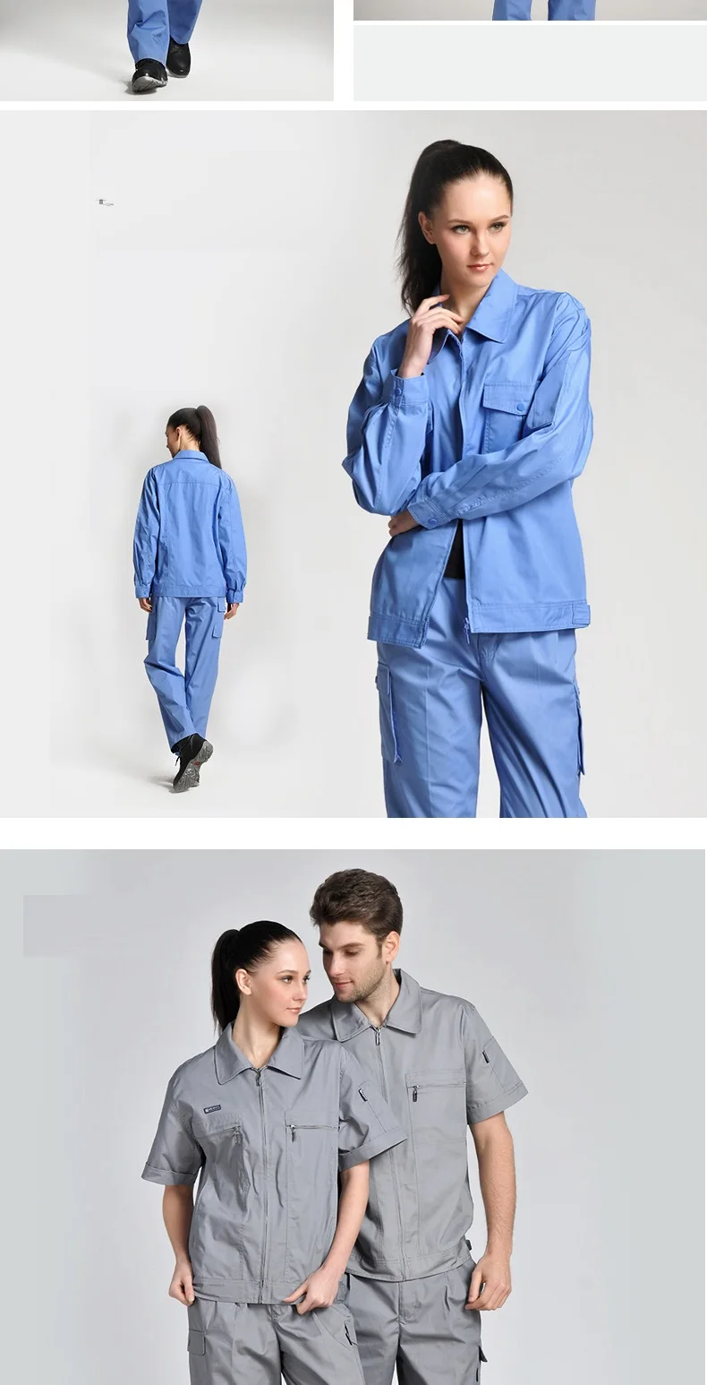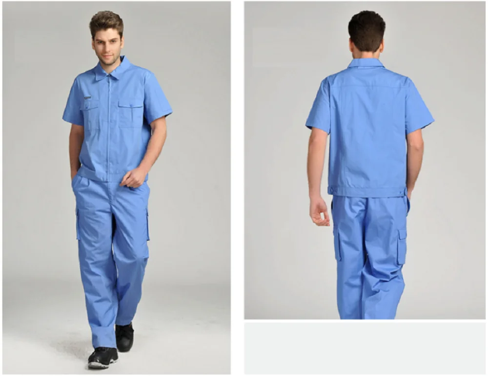 Monos de trabajo para hombre y mujer, uniformes de trabajo, mono de verano, traje de sección delgada para hombre, ropa corta transpirable resistente al desgaste de talla grandeOveroles de trabajo para hombres y mujeres, uniformes de trabajo, trajes de primavera y verano, conjunto de ropa de talla grande de manga corta resistente al desgaste transpirable fino, adecuado para limpiadores de talleres de reparación de automóviles de fábrica, etc.