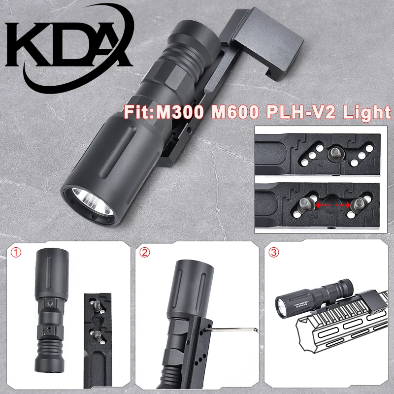 Montaje adaptable de metal para linterna PLHV2 M300 M600, montajes offset para linternas Surefir M340 M640, base de linterna táctica Scout Airsoft, equipo de caza