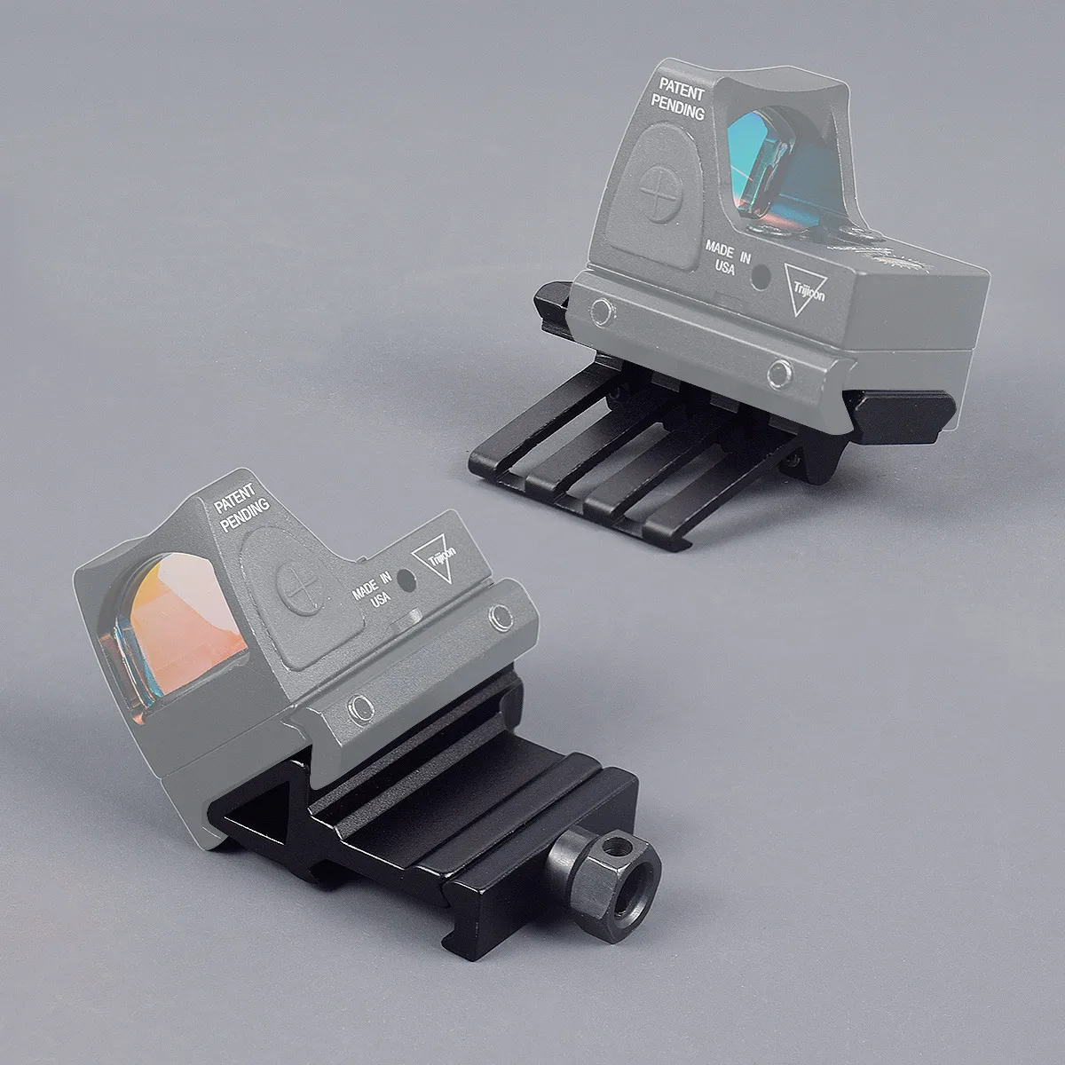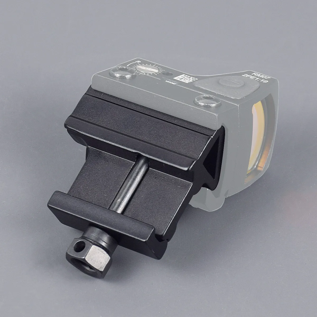 - La tuerca de un solo pulgar asegura el soporte al riel estilo Weaver/picatinny